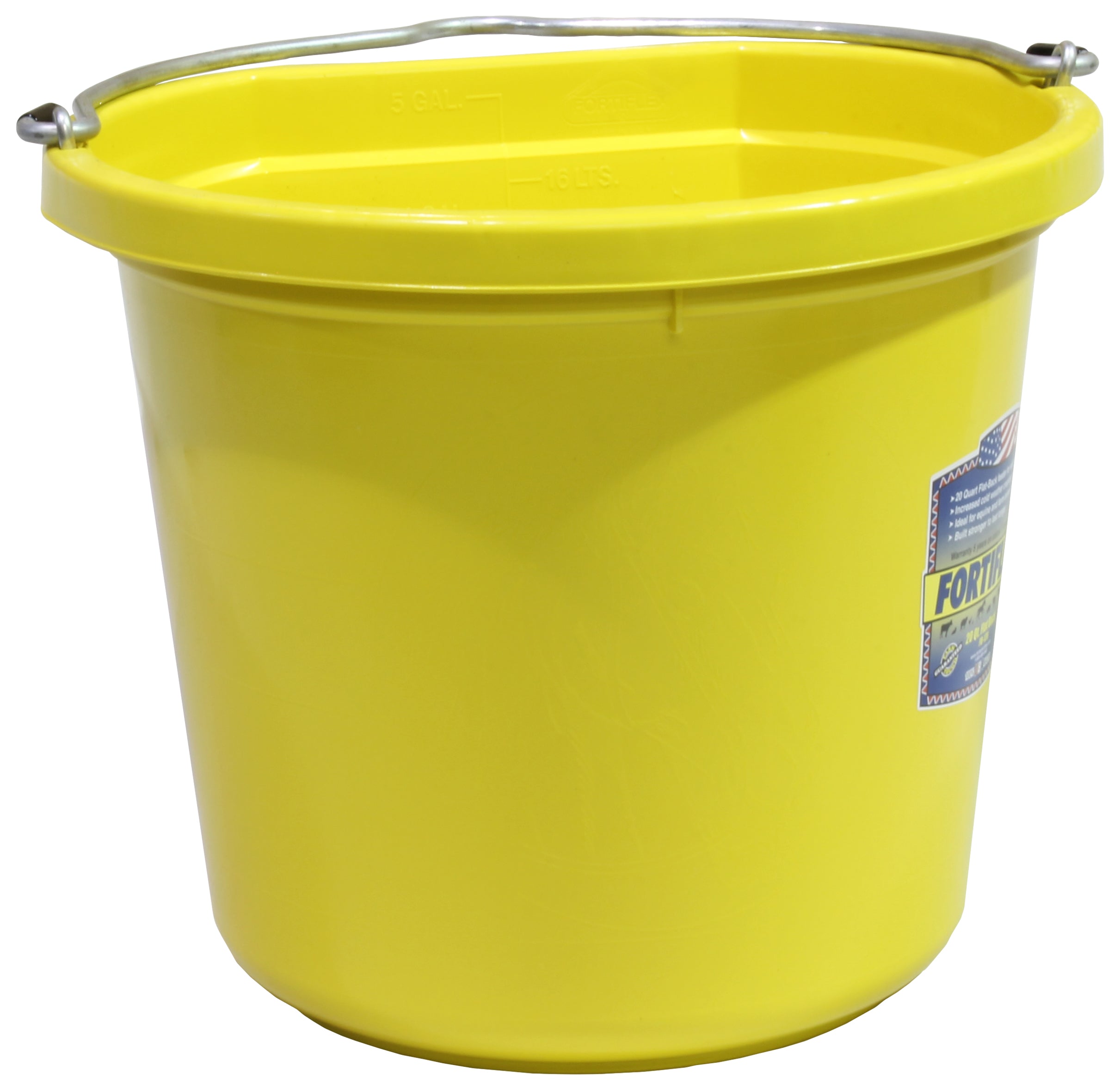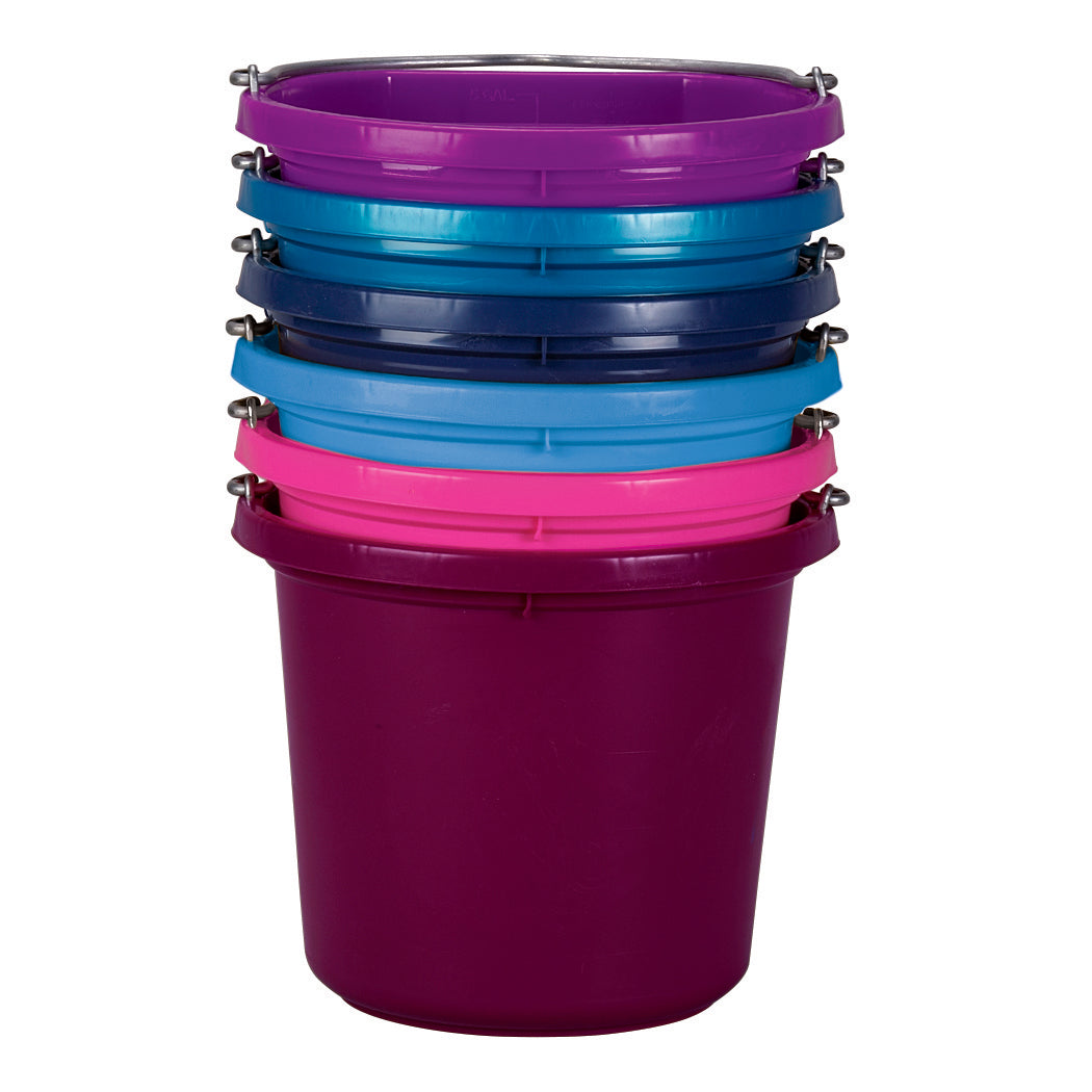 A favorite of many for watering or feeding horses, the Fortiflex® 20-Quart Flatback Bucket stands up to the daily rigors of the stable and barnyard—even in icy temperatures. It’s made of a food-grade, BPA-free Fortalloy rubber-polyethylene blend with heavy-duty galvanized fittings to resist cracking and breaking. The flat back design keeps it stable against a wall. Capacity markings in quarts, gallons and liters let you know exactly how much water your horse has consumed. Available in an array of colors to enhance your stable.