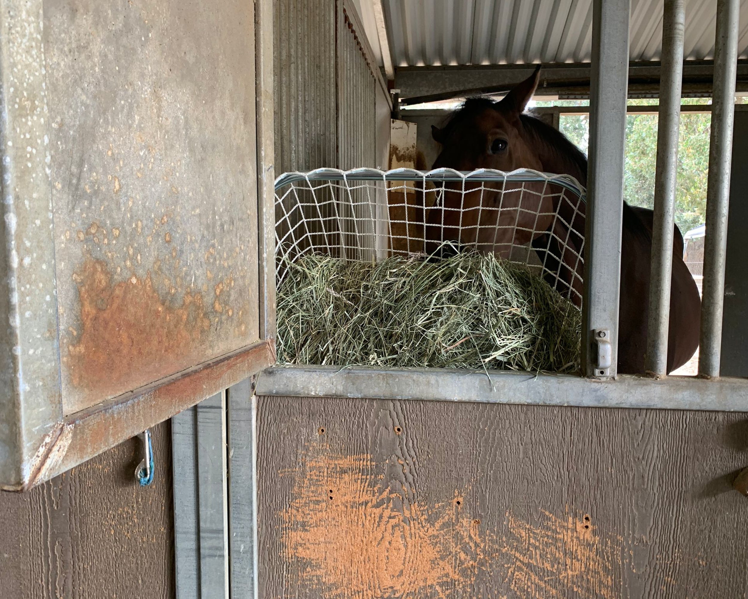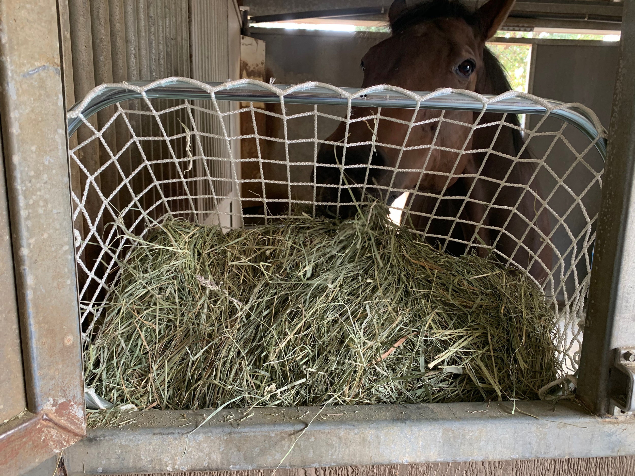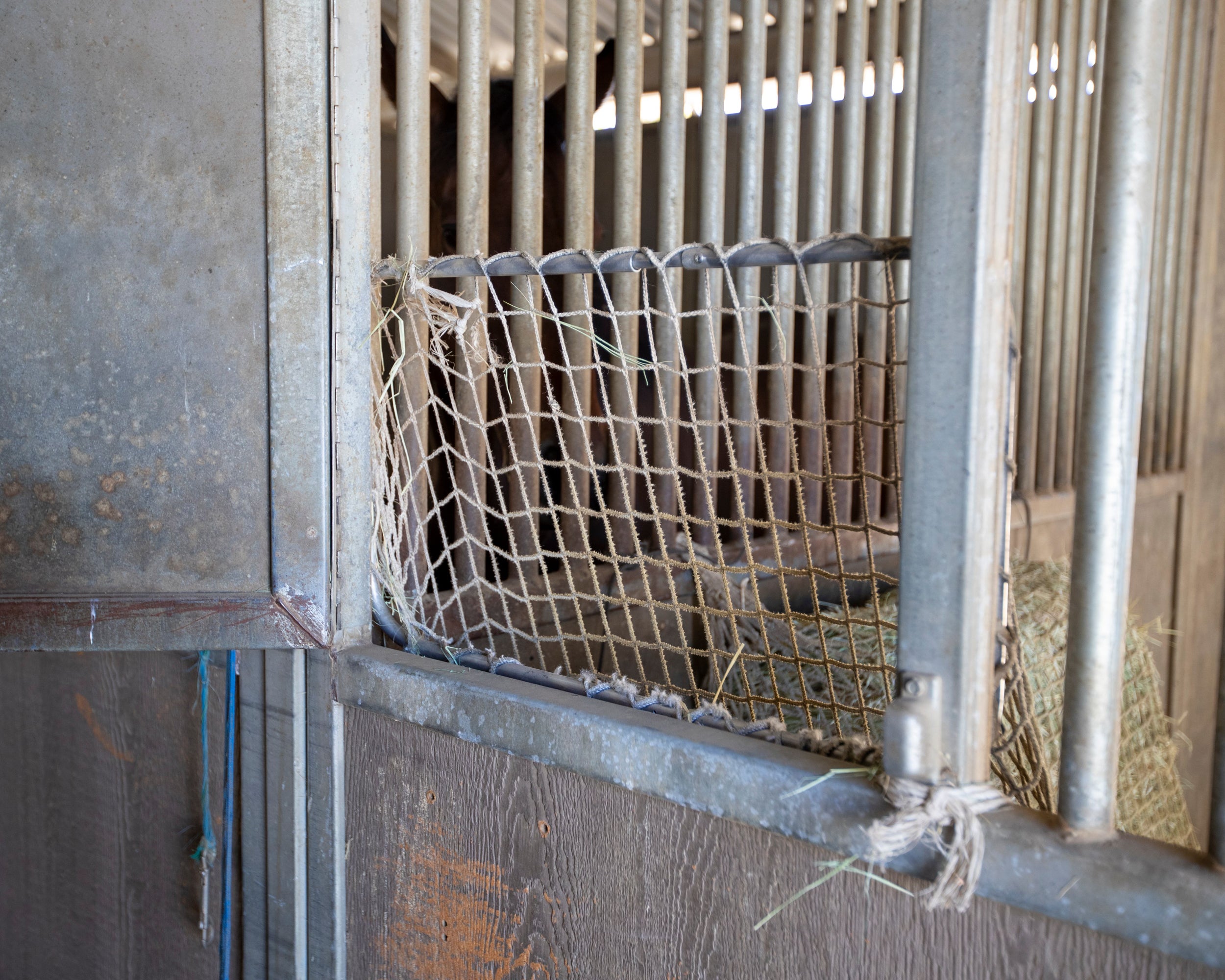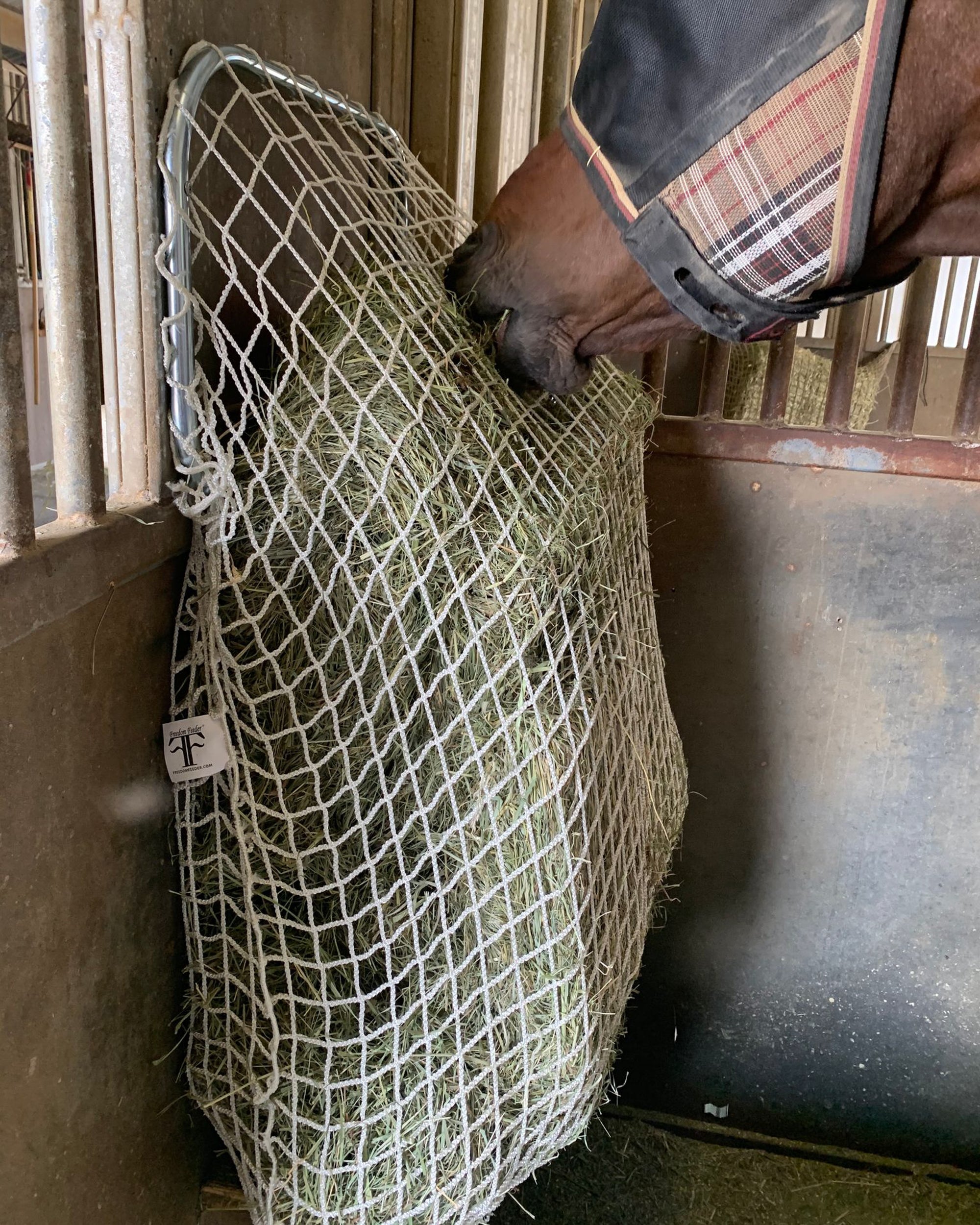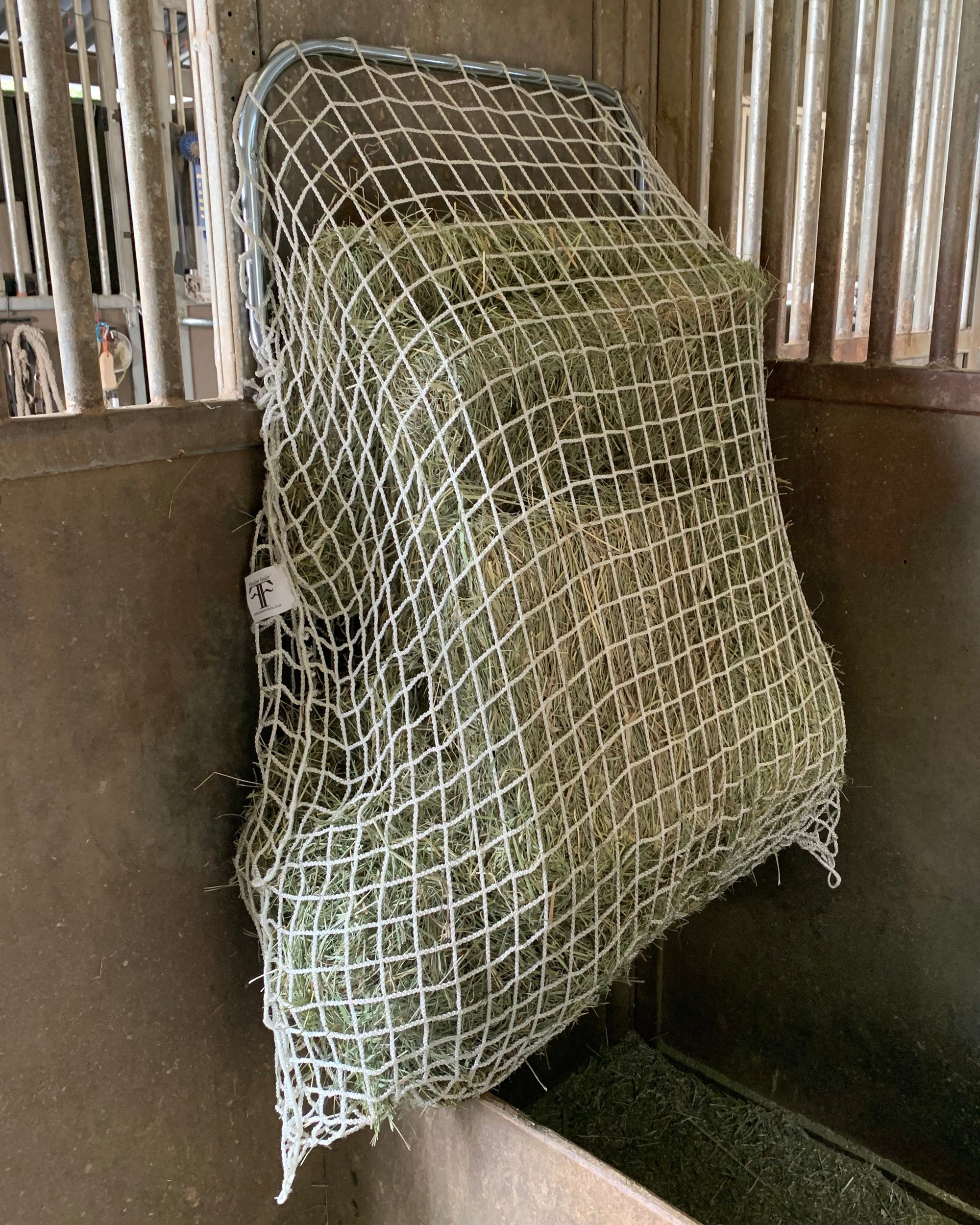 The Kensington™ Freedom Feeder Adjustable Frame is a custom metal frame designed to be used with the Freedom Feeder Day Net, Extended Day Net or Full Bale Net and can hold up to 125 pounds of hay.