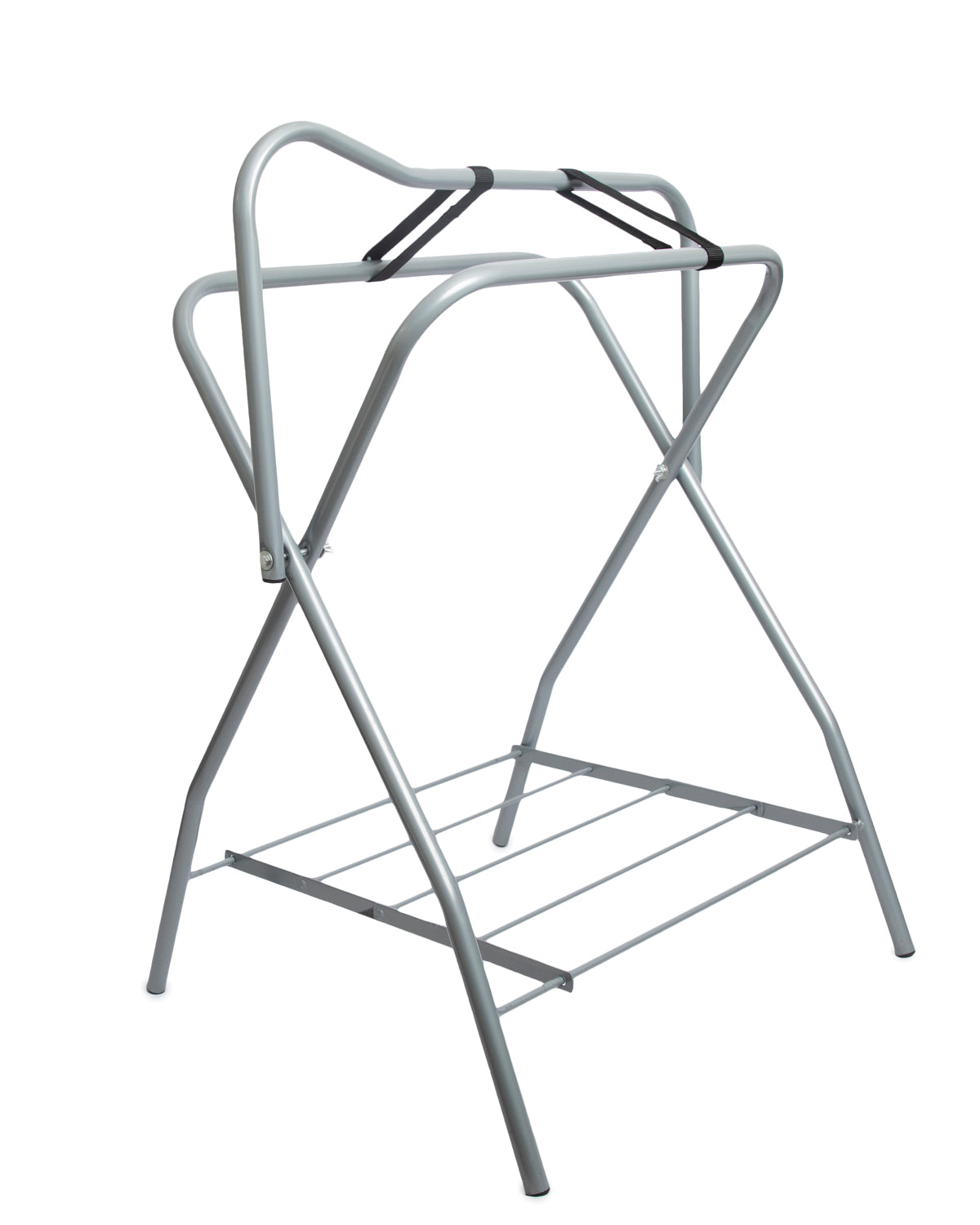 Sturdy, durable and easy to transport, our Portable Saddle Stand works exceptionally well in the tack room at home or on the road. It is crafted of iron tubing with a baked-on powder coat finish that helps prevent rusting.