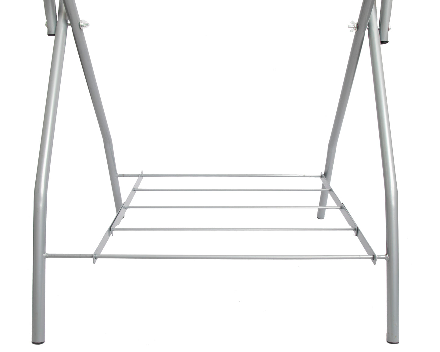 The top piece swivels down conveniently so a saddle can be positioned upside-down for easy cleaning of the gullet and flaps. A wire shelf holds tack cleaning supplies or saddle pads.
