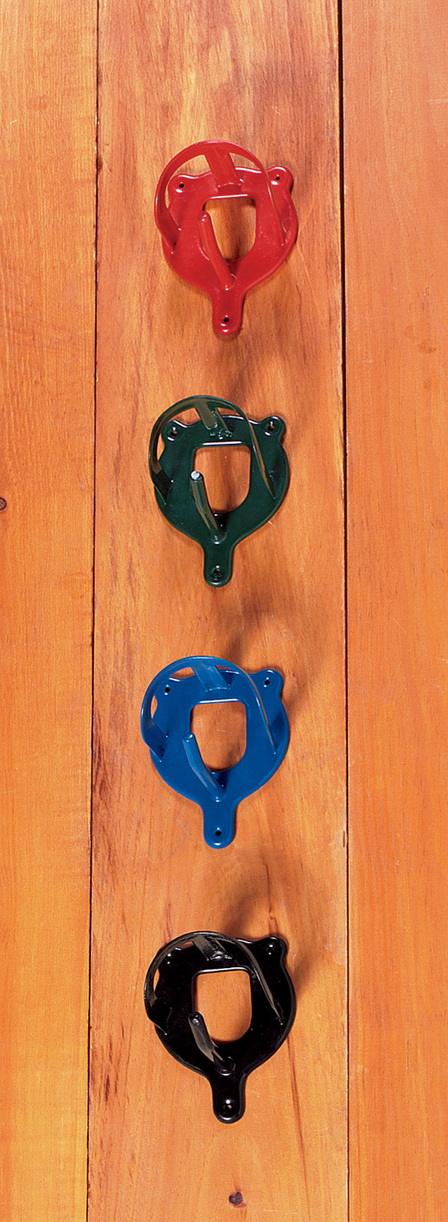 In plastic-coated steel for durability, Standard Bridle Brackets are an affordable and easy way to organize your tack room. Top portion is curved to support crownpieces of bridles and halters without creasing. Lower hook is ideal for keeping a martingale, breastplate or lead handy. Mounts with three screws, not included. Each.
