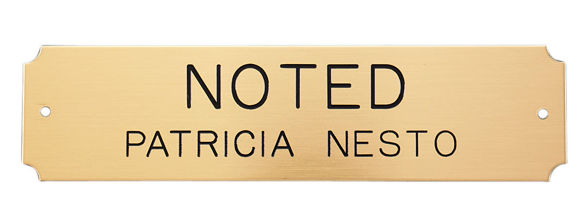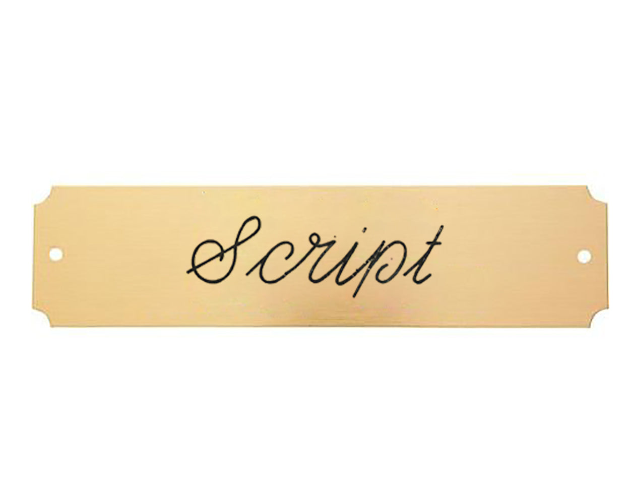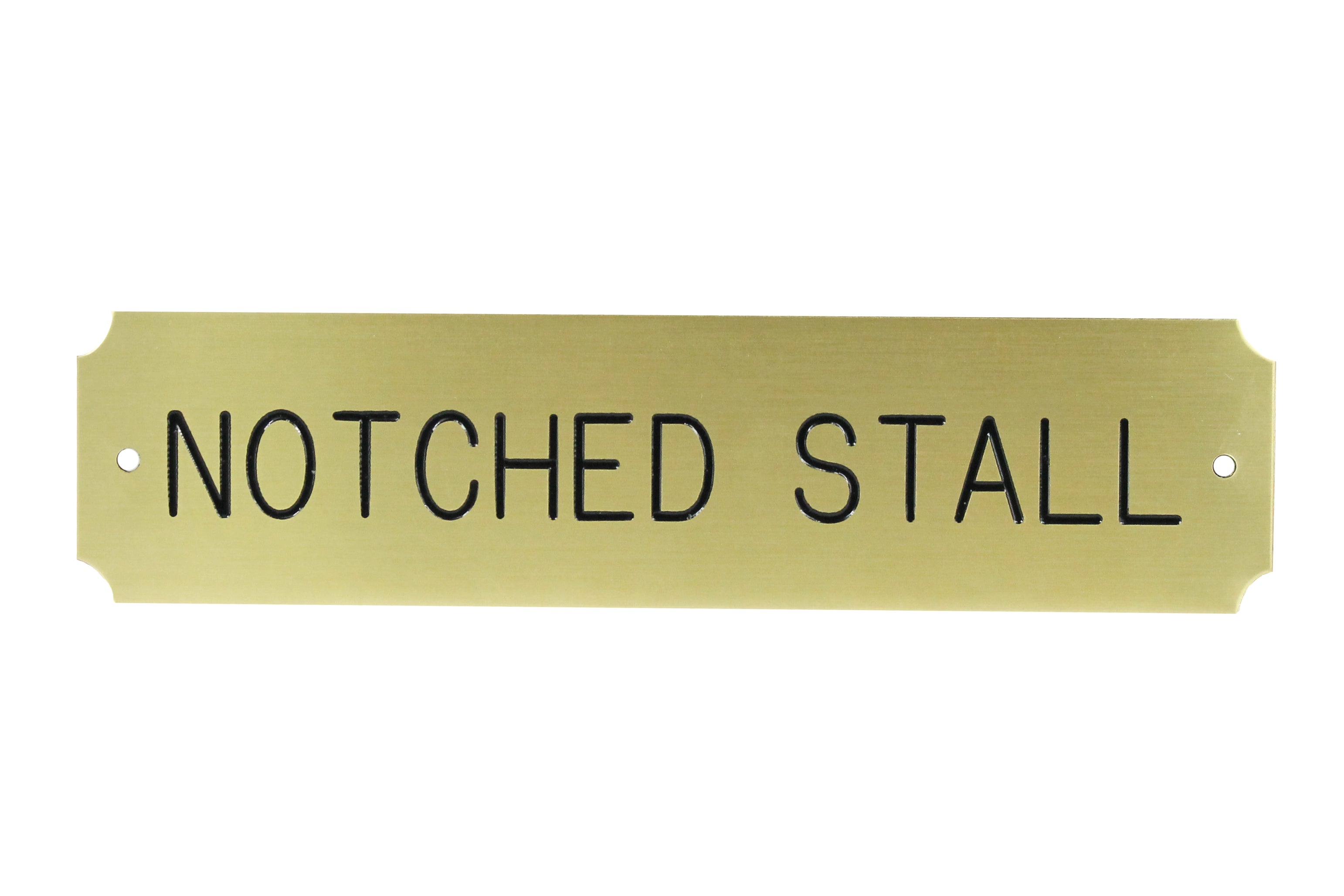 The Notched Stall Plate in heavy brass is perfect for personalizing your horse's stall. It holds 3 lines of text. Specify Block or Script and whether you want pre-drilled holes for mounting. 8"L x 2"H. Allow 2-3 weeks for delivery. Personalized items are not returnable.