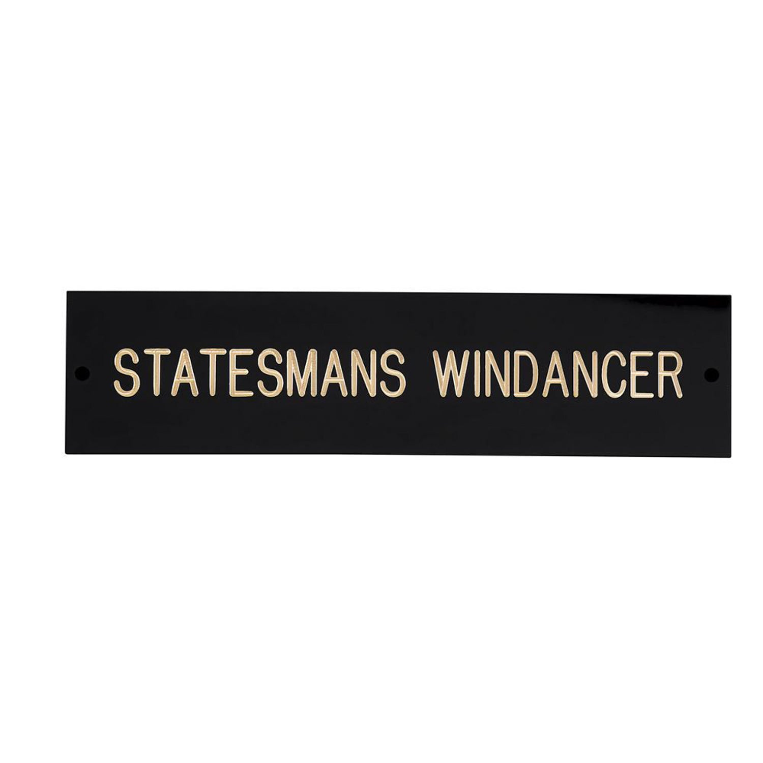 The Rectangular Black and Brass Stall Plate has a striking look with its brass engraving set against a midnight background. Measures 8" x 2" and holds 3 lines of text. Choose block or script. Also specify whether you would like the plate to have pre-drilled holes. Allow 3-4 weeks for delivery. Personalized items are not returnable.