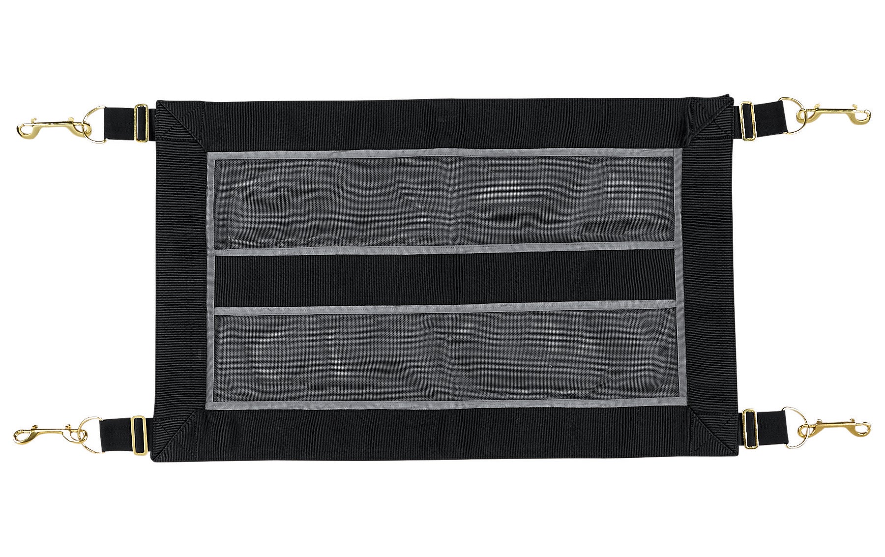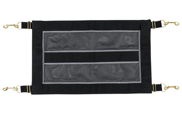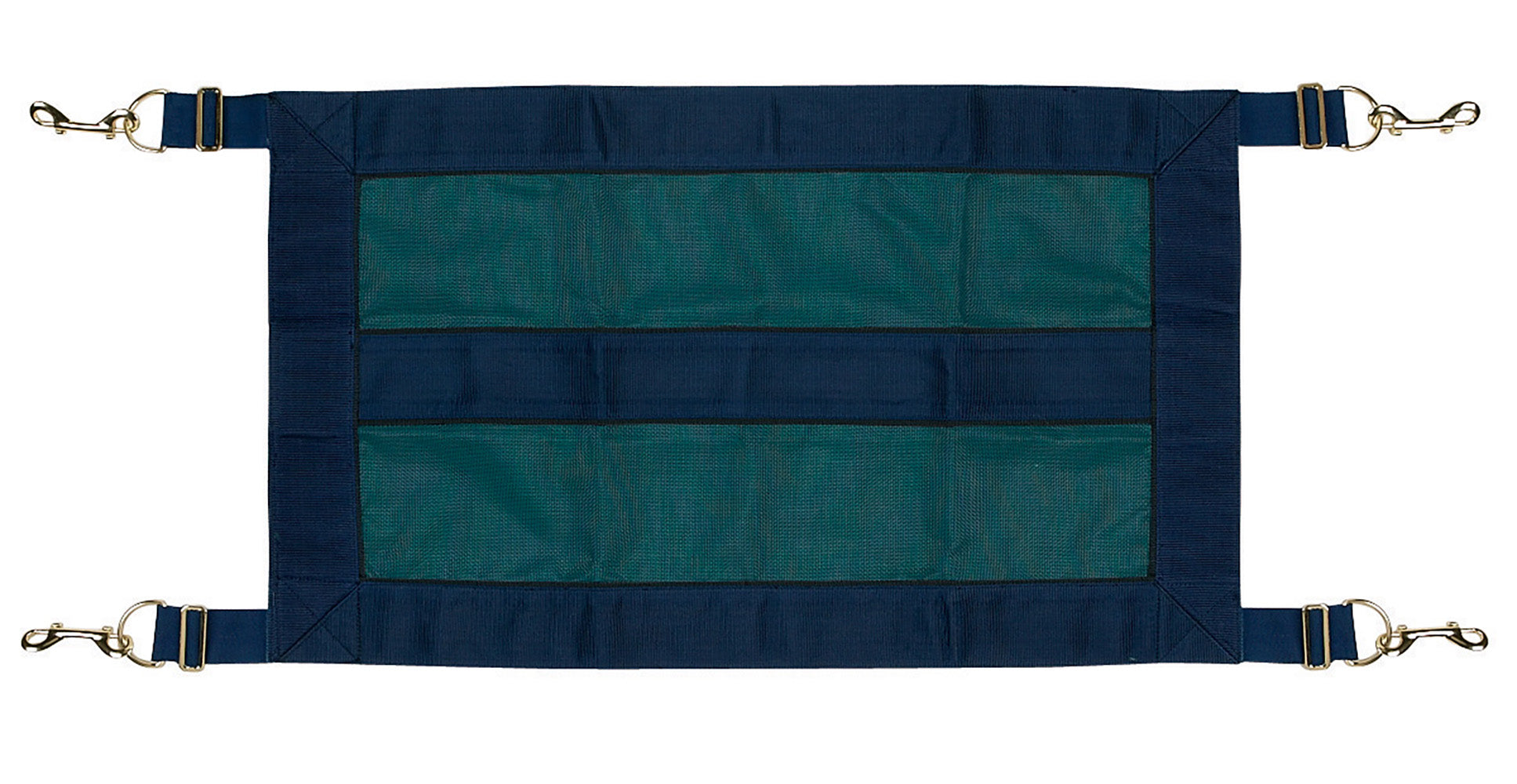 The Stall Guard adapts to nearly any stall opening and allows horses to socialize while keeping them in their stalls. This is a practical, durable and attractive stall guard that can be monogrammed for a custom look. Textilene® mesh on all sides. Brass-plated hardware. Adjusts 45"-51".