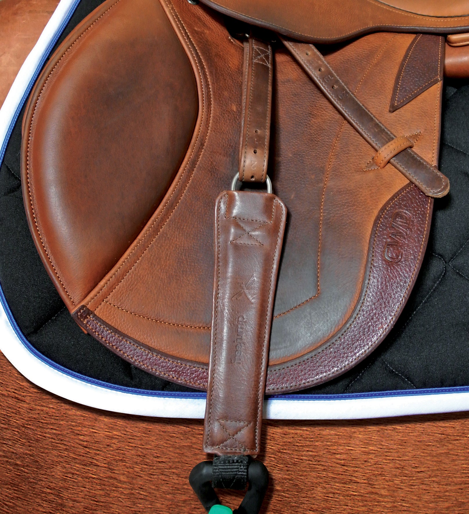 Each stirrup leather comes with two straps, one grippy and one in smooth leather, that attach with a hook-and-loop backing. Specialized rubber material on the grippy strap faces the saddle to offer maximum hold for a stable stirrup position. The material won’t harm the saddle leather and won’t restrict the rider’s leg movements. Alternatively, the smooth leather strap offers a conventional stirrup leather feel.