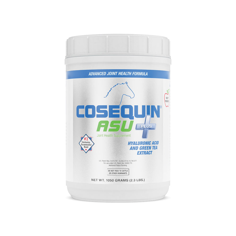 Cosequin ASU Plus is veterinarian-formulated with avocado/soybean unsaponifiables (ASU), glucosamine, chondroitin sulfate, methylsulfonylmethane (MSM), boswellia serrata extract, green tea extract and HA to provide joint health support for equine athletes regardless of discipline or performance level.