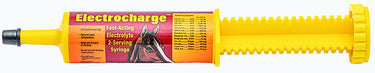 Finish Line® Electrocharge™ Fast-Acting Electrolyte Paste for horses is a concentrated blend of electrolytes and trace mineral salts that helps promote healthy hydration in your horse. Made in the USA, this salt-based oral paste absorbs rapidly and replaces electrolytes in the same proportion a horse loses through sweat. It is supplied in a convenient, prefilled, oral syringe that provides two 30cc doses—ideal for traveling and working horses.