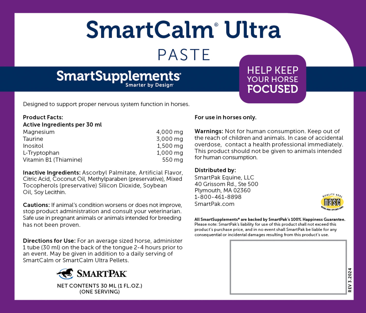 PRODUCT DESCRIPTION: SmartEquine™ SmartCalm Ultra Paste