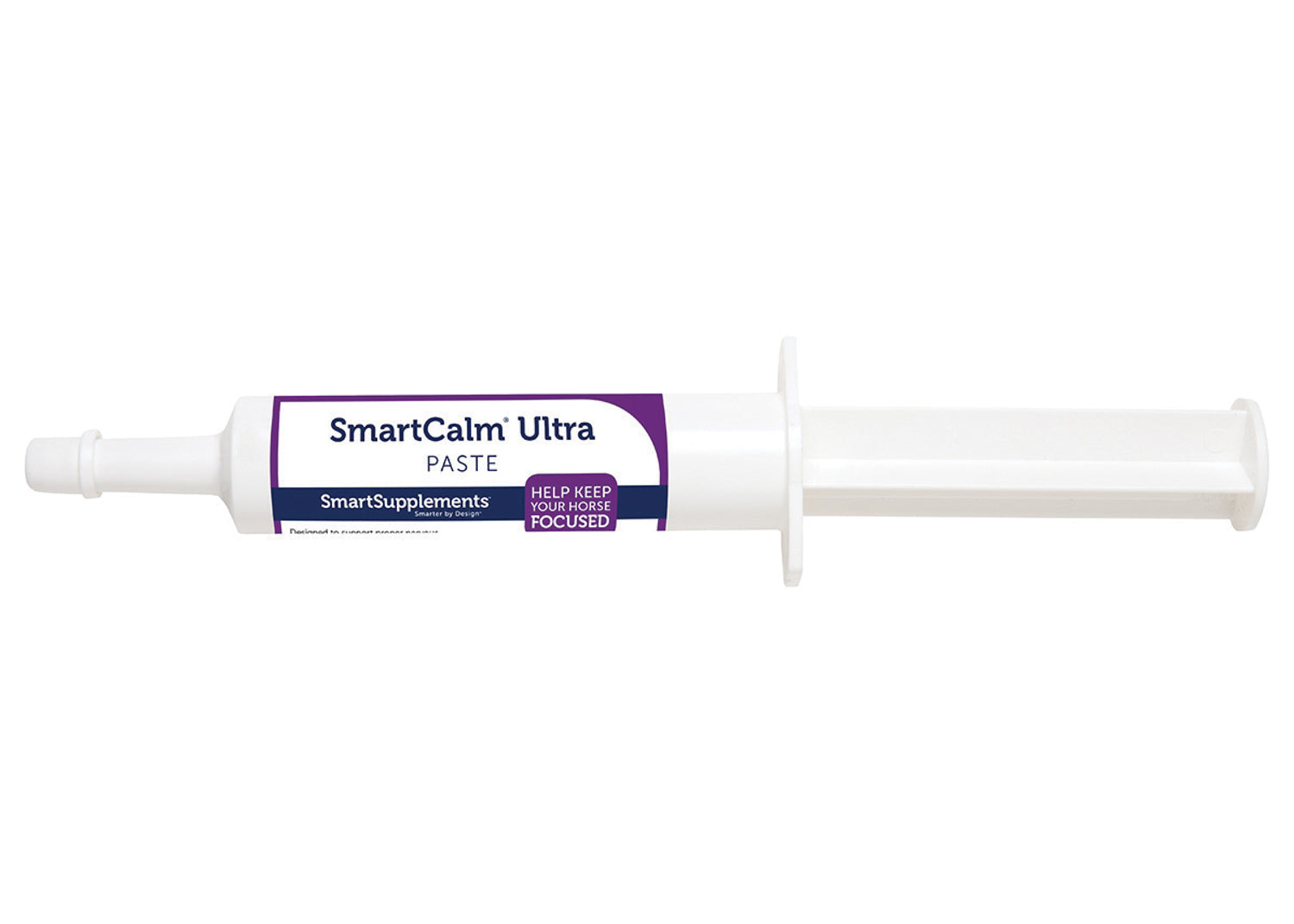 SmartCalm™ Ultra Paste®  is a comprehensive, herb-free formula that supports proper nervous system function, helping to manage stress in skittish horses. This convenient paste is ideal for providing extra support in new situations and during times of stress. Includes magnesium, taurine, inositol, L-tryptophan, & thiamine to support nervous system function.