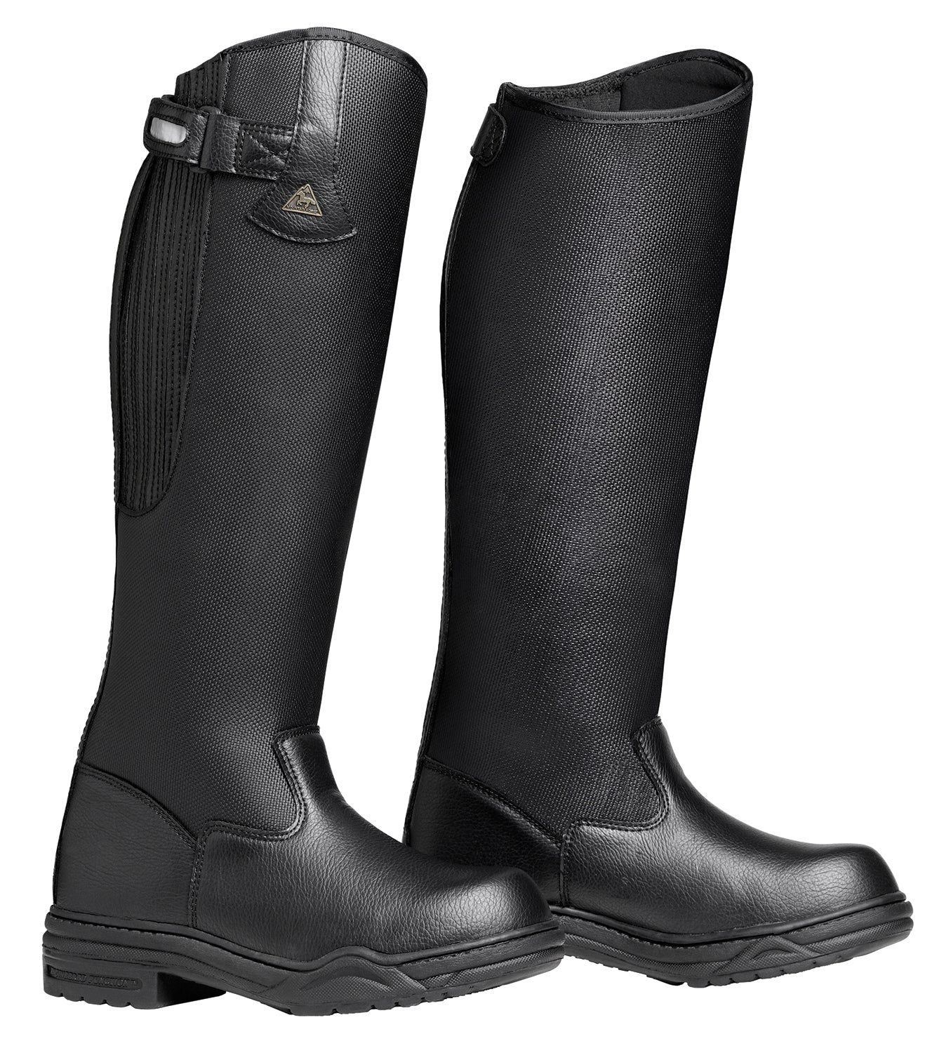 A perennial winter favorite returns in the Mountain Horse® Ladies' Rimfrost Rider III. Built with a hard-wearing Duralon upper, this tall winter riding boot is equipped with Extensia, a unique material that withstands more than 1,000,000 flexes in 14°F/-10°C. Waterproof construction by the use of cell-sealing cement technology keeps your foot dry up to the base of the zipper. A heat insulating Thermolite® lining keeps leg and foot warm. Strong and durable YKK® rear zipper is bordered on one side by an elastic panel for an individual fit. Ergonomically-designed removable EVA™ insole. Built-in 850°C steel shank for improved stability while riding and walking. Heel is fitted with shock-absorbing IPS system, which helps to reduce the impact of walking or doing stable work.
