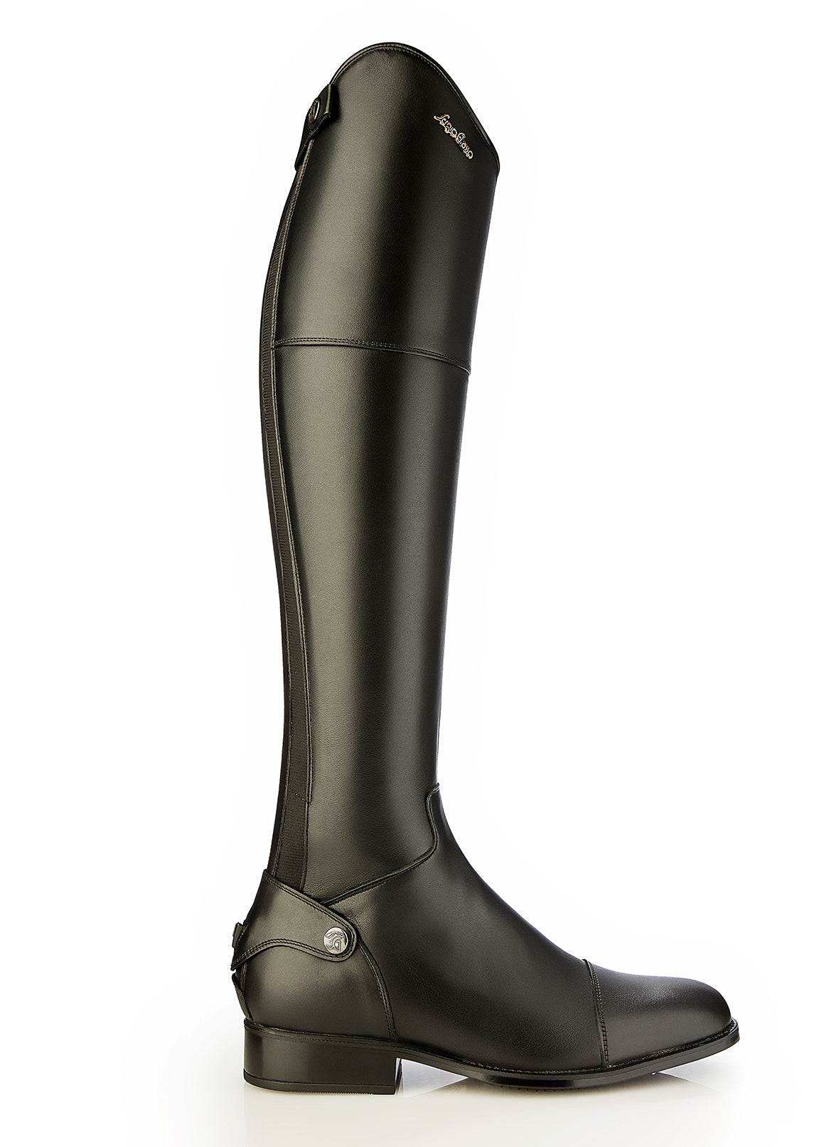 The Progress Dress Boot for men and women is part of Sergio Grasso’s Everyone Collection of tall boots, which is dedicated to all current and future equestrian enthusiasts. It is crafted for comfort with a supple nappa calfskin leather upper and lining, and designed to offer a good grip in the irons with the nonslip Vibram® sole. The SG Ultratech calf panel on the inner aspect ensures perfect grip in the saddle. The Progress Dress Boot is styled with a Spanish topline and square toe.