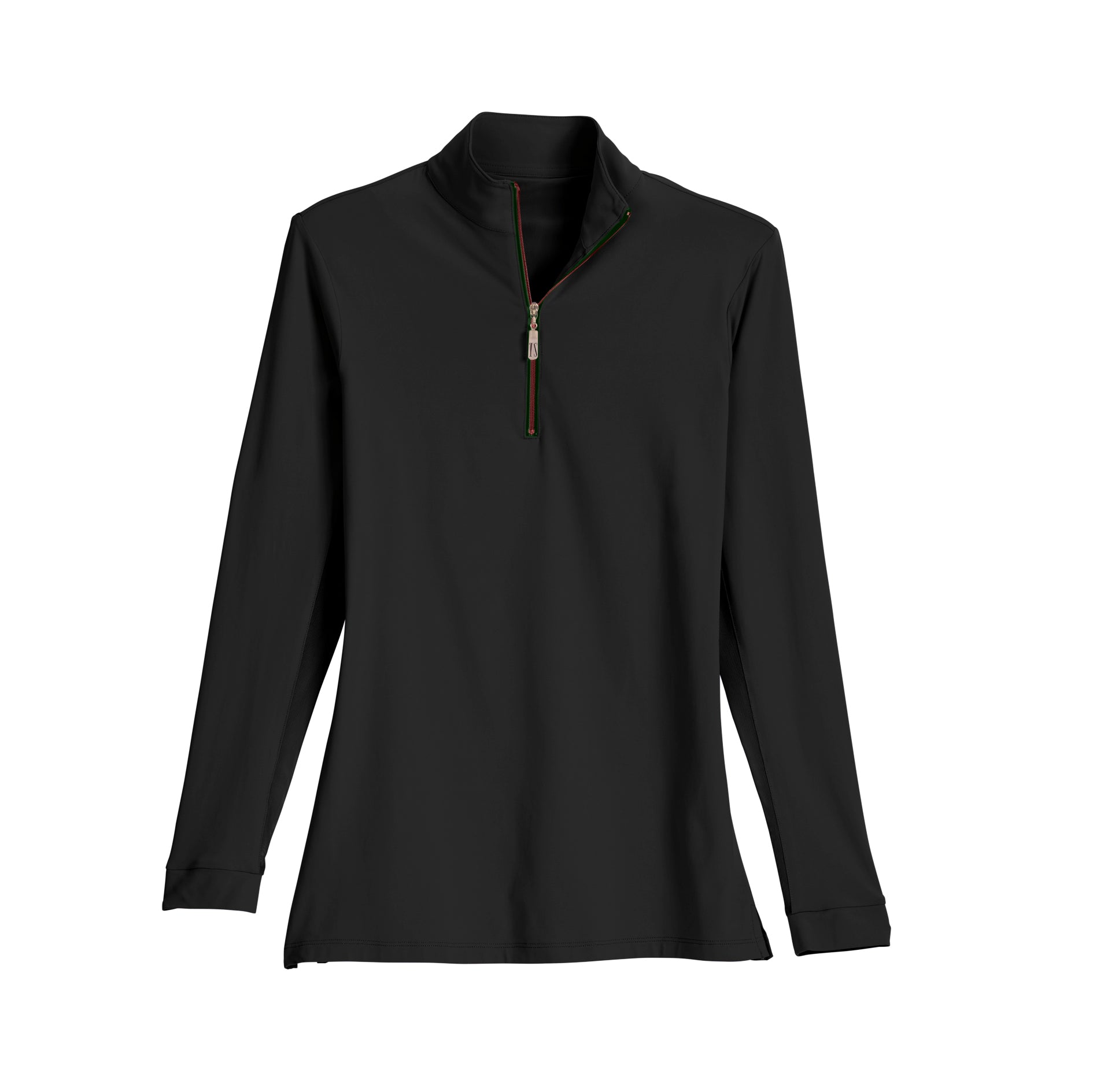 Long sleeves have full-length mesh panels to promote airflow for added cooling. This gorgeous, semi-fitted shirt is styled with a color-coordinated quarter zipper, stand collar and nicely finished cuffs.