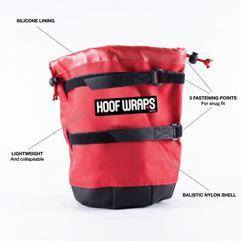 The Hoof Wraps™ Soaker is designed to take the difficulty, mess and frustration out of soaking your horse’s hoof. Ideal for treating an abscess, thrush, infections, puncture wounds, bruising, laminitis and white line disease, it eliminates the need to watch your horse soak and frees you for chores during treatment. Just apply Hoof Wraps Soaker and then fill it with your soaking medication. This professional grade soaking boot is made with a thick shell of ballistic nylon and a liner of coated nylon. Lightweight and collapsible, it fits a hoof measuring up to 6" in diameter. Three fastening points provide a precise, snug fit. Each comes with two EVA foam pads and an extra strap for your convenience. Each.