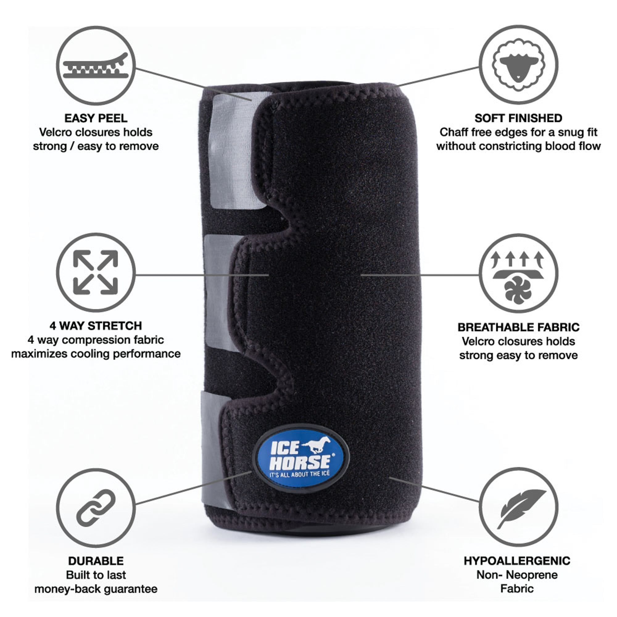 - It may appear the wrap is too wide. The ice packs fluff p as much as 1-2" when frozen. The outer shell is designed to stretch and then compress the ice evenly along the horse legs.