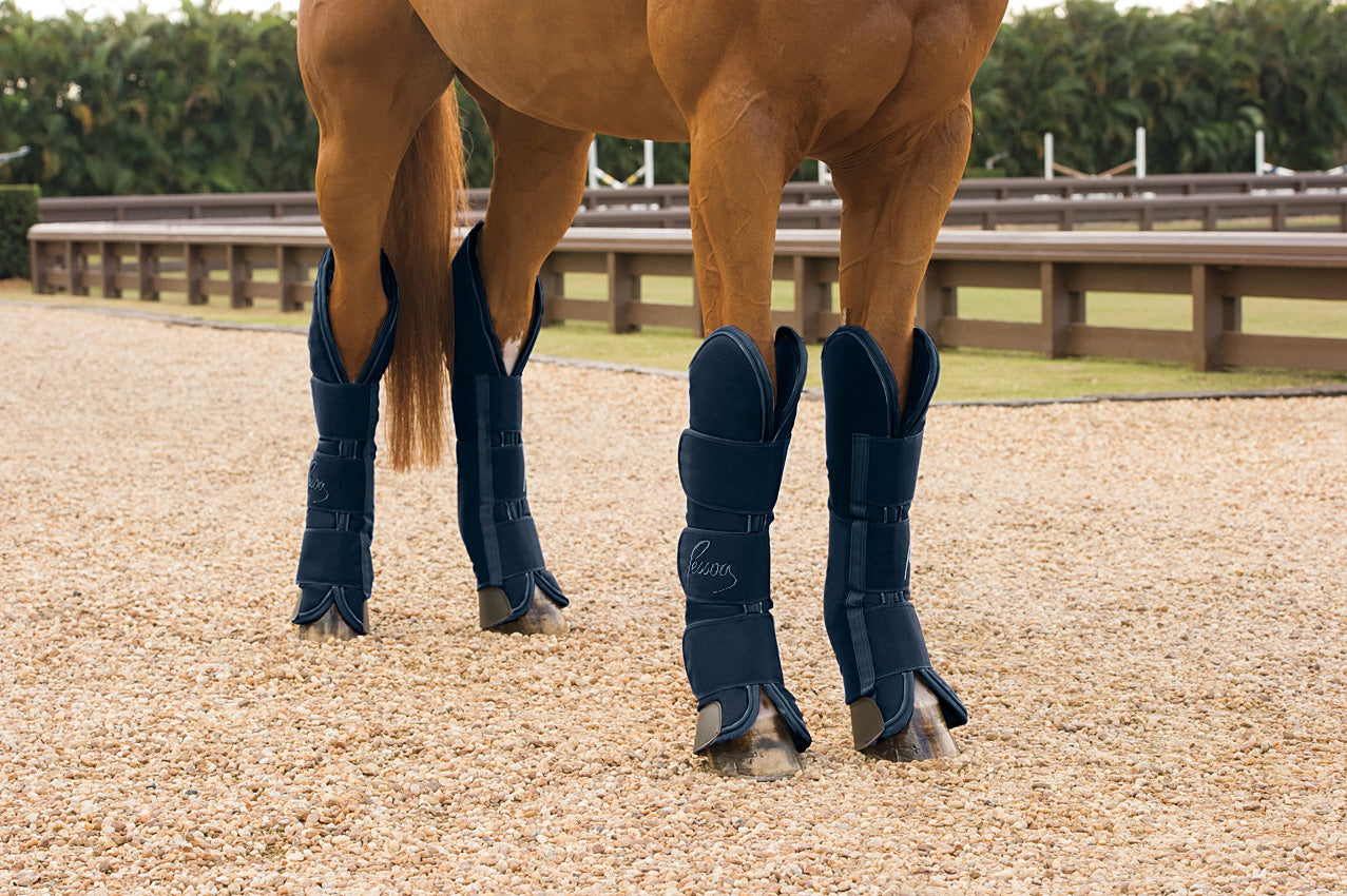 Made from ballistic weave nylon, Pessoa Shipping Boots have a contour shape, hoof protectors and large VELCRO® brand closures for comfort and protection. Pony size front 17 1/2"H, hind 22"H. Horse size front 21"H, hind 26 1/2"H.