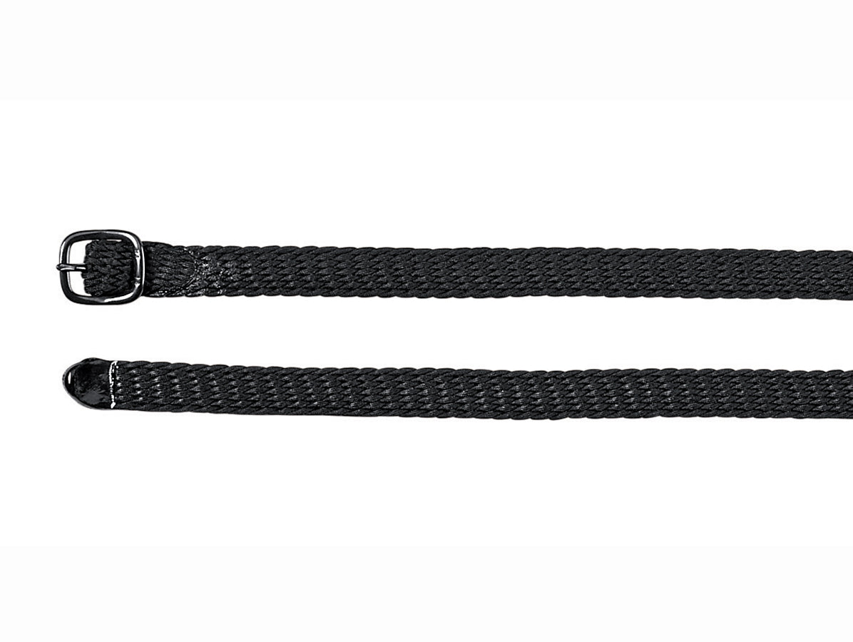 With the Herm Sprenger® Black Buckle Nylon Spur Straps, the buckles disappear in the ring for an exceptionally clean look. A perfect partner for HS Black Ultra Fit spurs, these straps are made of premium quality braided nylon with black powder-coated stainless steel buckles. 17 3/4"L. Pair.