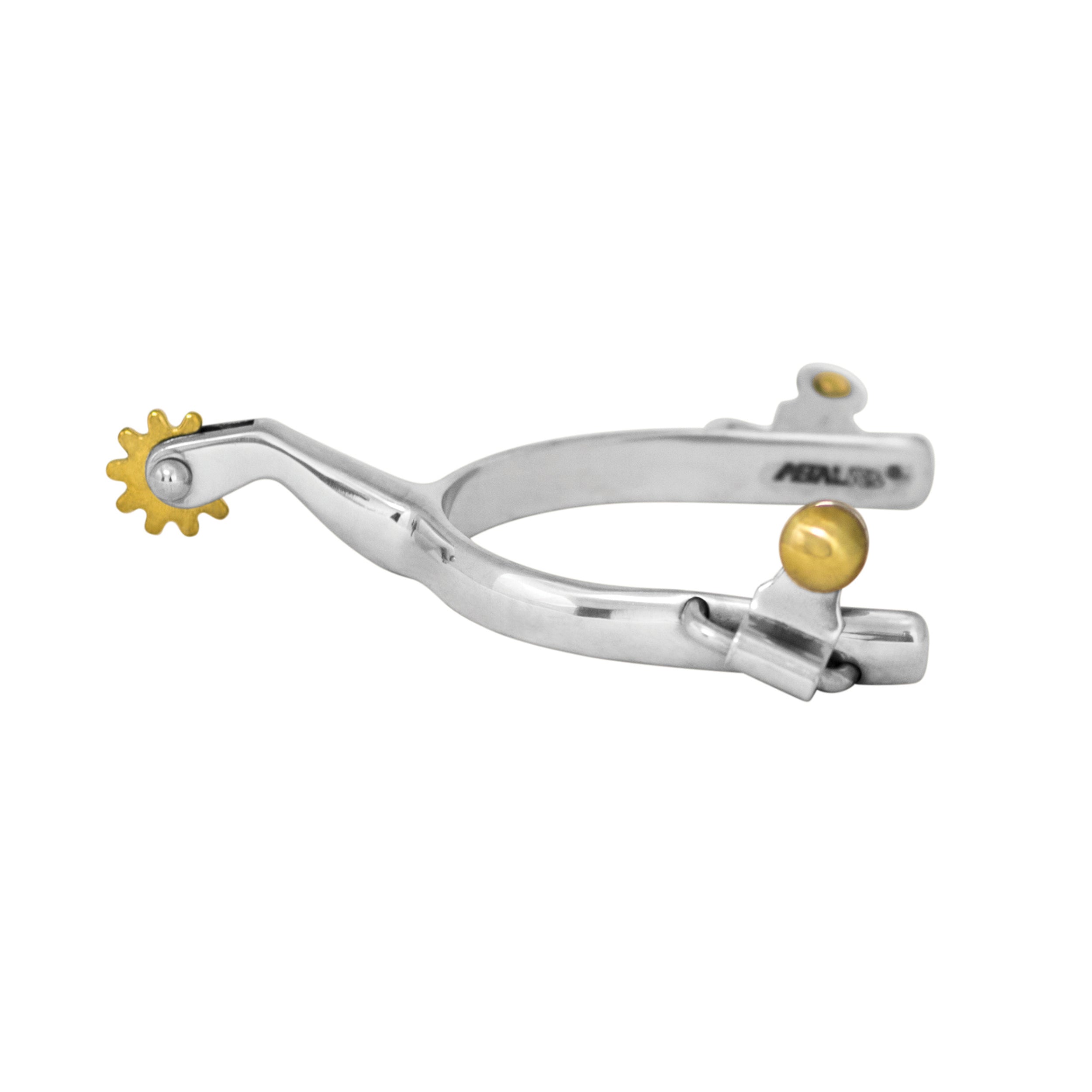 The Metalab Stock Spur is a Level Two design made of stainless steel with solid brass buttons and rowel. Large cup.