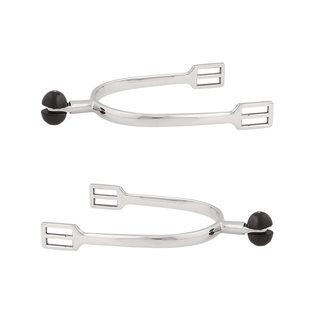 The Suffolk™ Roller Spurs features a plastic rolling end for plenty of extra leg aid and to help reduce spur rubs. Sized to fit ladies’ boots. 1 1/8" neck. Pair.