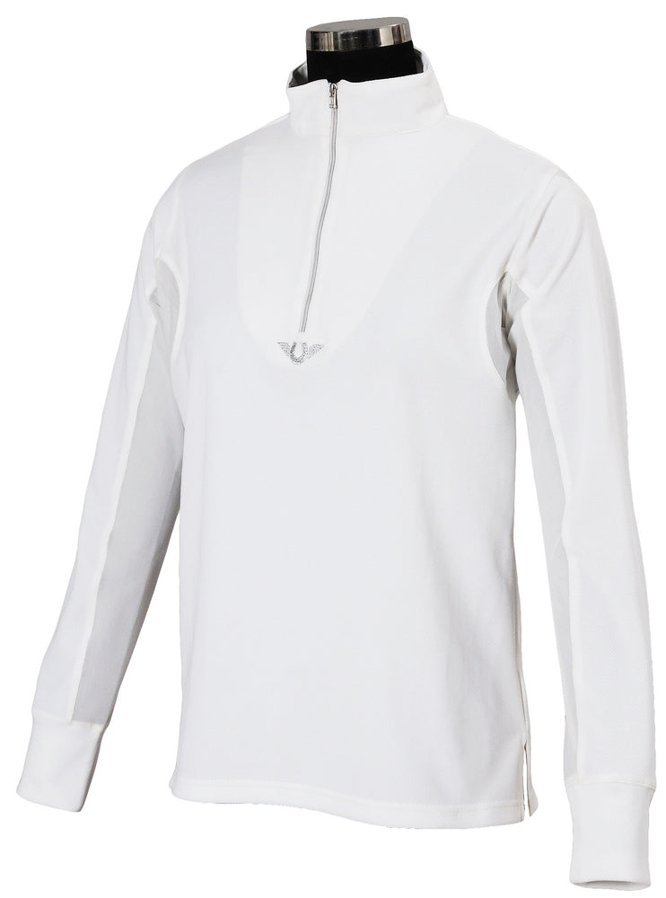 The TuffRider® Ladies' Ventilated Technical Long Sleeve Sport Shirt is a popular choice for hot weather riding. The combination of moisture-wicking technical fabric and ventilated mesh on the underside of the arms gives you maximum temperature control. The zip-up front allows for easy on and off. With a variety of color options, you are sure to enjoy riding in this sport shirt.