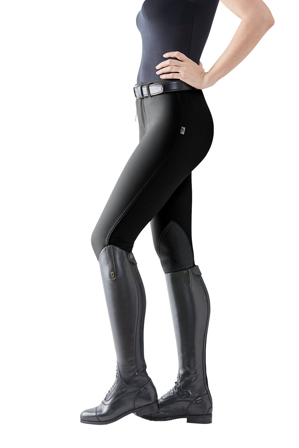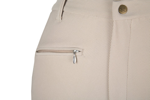 Devon-Aire® All-Pro Breeches are soft, comfortable and flattering. Made with the latest in fabric technology, the German style micro-ribbed fabric offers maximum stretch and recovery. Dev-Tek® moisture management keeps you dry and comfortable. Sewn with no uncomfortable inside leg seams, this breech is styled with a classic fit, regular rise, front zipper, front clasp fastener, zip slash pocket, Clarino™ chevron-stitched knee patches and gripper elastic ankles. Reinforced seams for added durability.