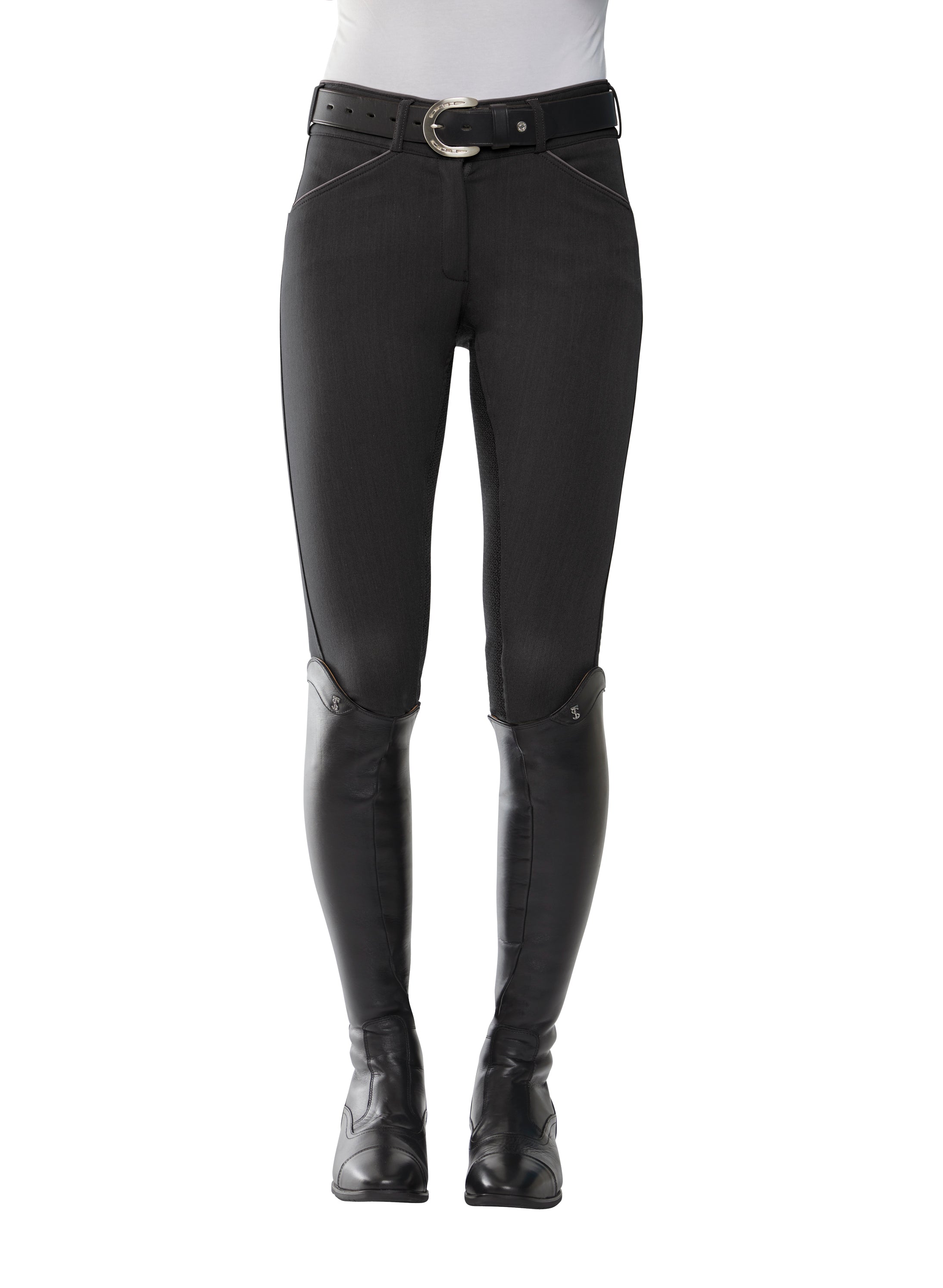 This breech also boasts the mid-rise EquiTrue Rise™, a unique cut that allows it to maintain a flattering, secure fit, staying true to your form as you ride or bend to groom. No matter how you move in the saddle or out, a soft, covered waistband and seat won’t slide, slip, pinch or bind—you’re free to think about more important things than yanking and tugging your breech for modesty.
