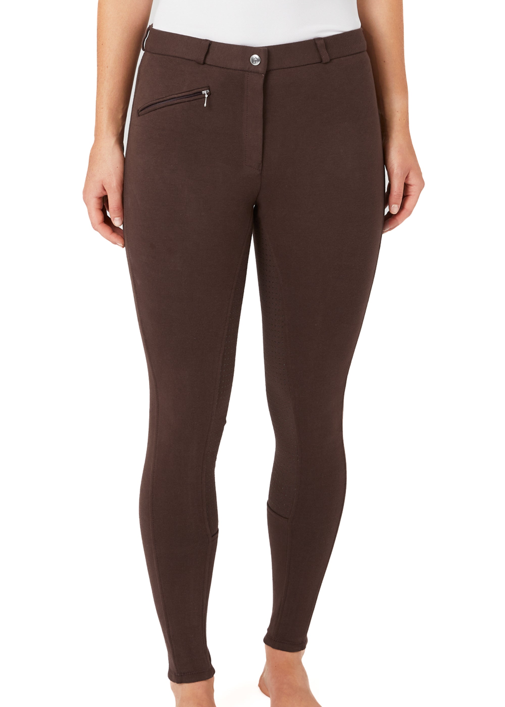 The casual feel is warm and breathable and ideal for afternoon rides around the stable or a long evening trail ride. The simple zipper pocket in the front will hold a horse treat to reward a nice ride. You will love the comfort of these pretty breeches and always appreciate the extra grip from the seat when you are in the saddle.