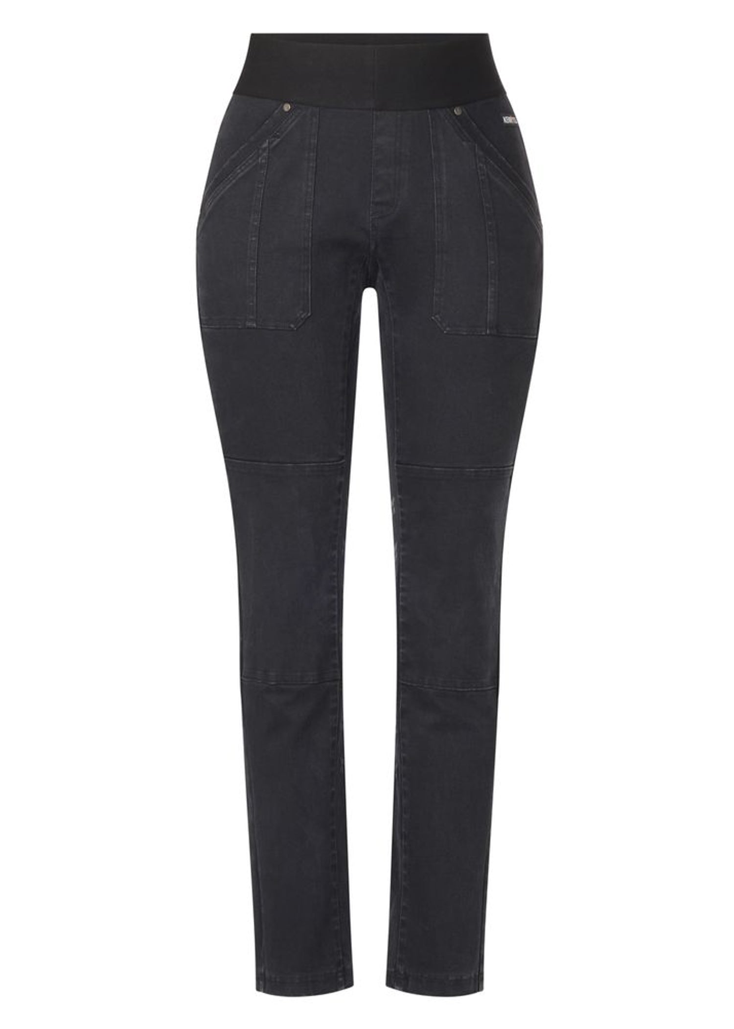 Pull on this Kerrits® Pocketful Stretch Knee-Patch Utility Pant for durability, versatility and comfort. Whether working at chores or enjoying a quick ride, the wide, knit waistband fits and flatters. Barn-worthy, mid-weight fabric stand ups to daily wear and provides four-way stretch for freedom of movement.