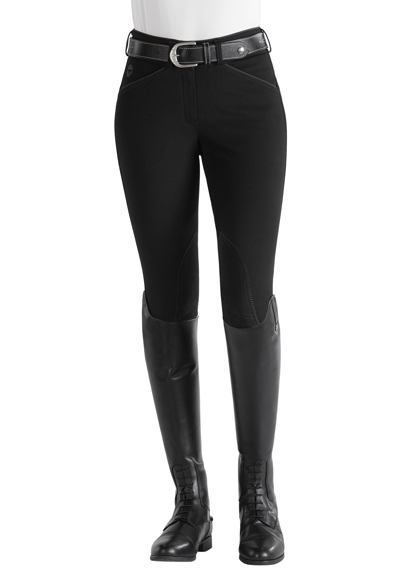 Designed to fit your curves without gaping at the waist, this breech features a mid-rise EquiTrue Rise™. It maintains a flattering, secure fit no matter how you move. It sits just below the belly button on most riders and suits every rider well. Covered waistband and seat won’t slide, slip, pinch or bind when you groom or ride.