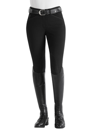 Wellesley Classic Piped Knee-Patch Breech offers a curvier fit suited to the rider who appreciates extra room in the hip and thigh. The durable, soft, mid-weight stretch fabric is perfect for year-round wear.