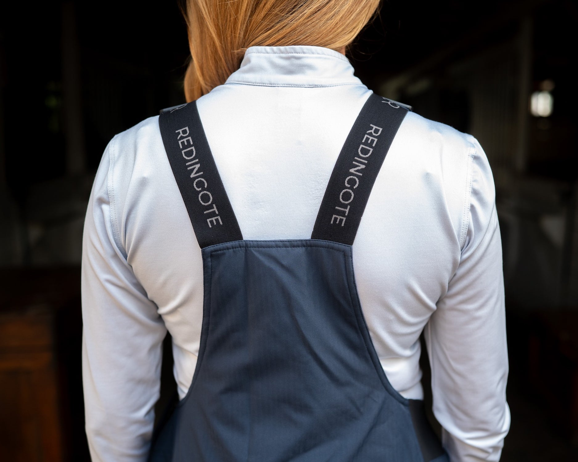 Stay warm and dry this winter with the Redingote Winter Insulated Bib Overall 2.0. Lightweight, warm, durable, functional and stylish. Favorite features include a waterproof shell, plenty of pockets, and leg zippers that allow pull on over boots. Breathable waterproof shell with fully taped seams and a quilted lining with 60 grams of insulation. Buckled straps with length adjustability and elastic inserts on the adjustable straps provide comfort and flexibility in the shoulders. Zippers on the legs allow for easy pull on over boots, side panel elastic for ease of movement and secure pockets, including a crop pocket. D-ring on hip holds your spurs and other essentials when not in use. Sized to layer over a standard riding outfit. Pair with the insulated riding jacket for maximum versatility.