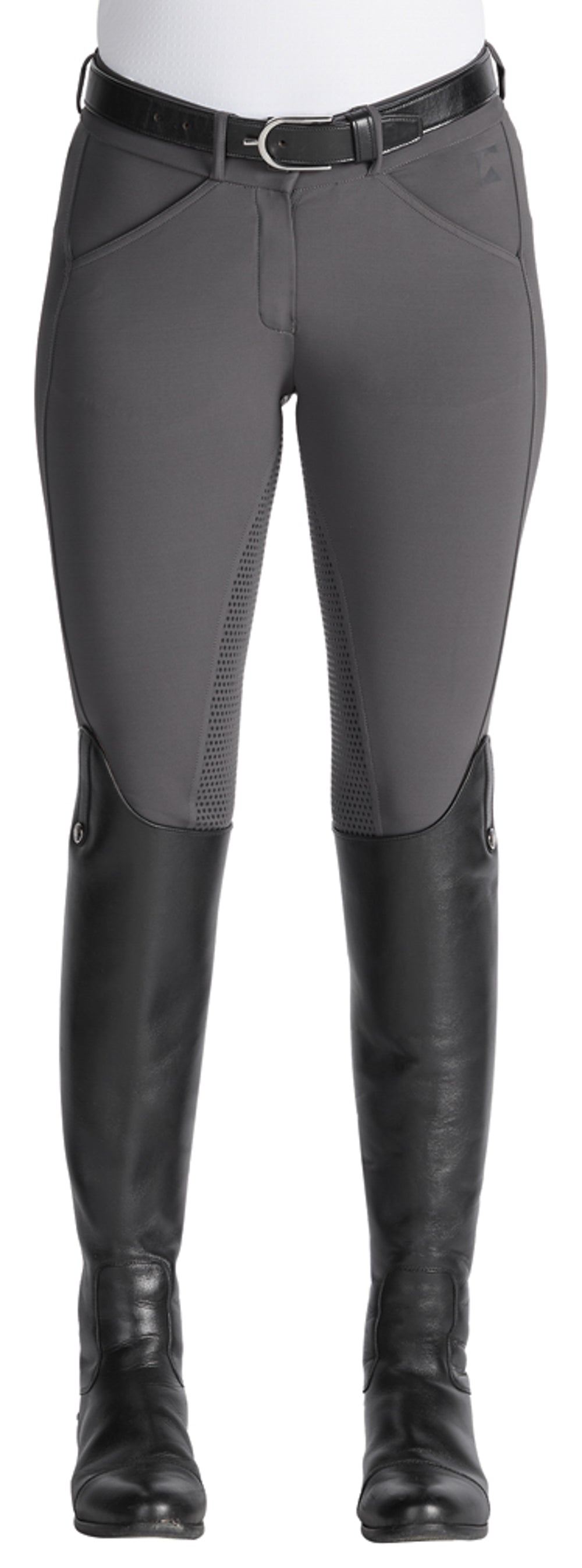 It is suitable for both schooling and showing. The EquiTrue™ Rise ensures a mid-rise fit that stays true to your form with every movement. Front pockets are sized to hold a cellphone.