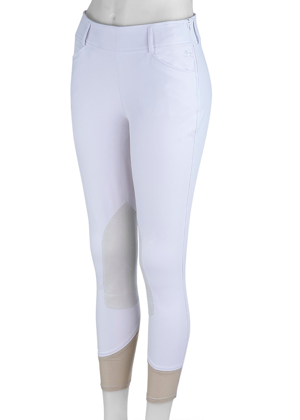 The R.J. Classics Belmont Side-Zip Breech is the ideal design for the traditional rider. Styled with a flattering side zipper, this ladies’ breech features premium quick-dry stretch fabric with an amazing feel and properties to sculpt and cover. Naturally breathable, supple, premium Clarino® knee patches present the look of real suede, yet withstand the intense abrasion expected from the sport.