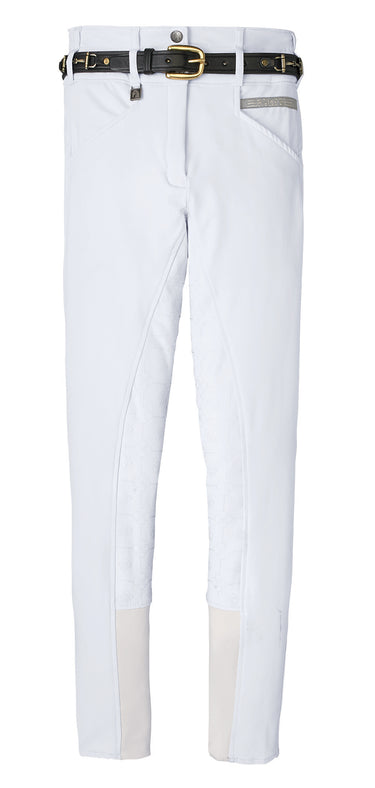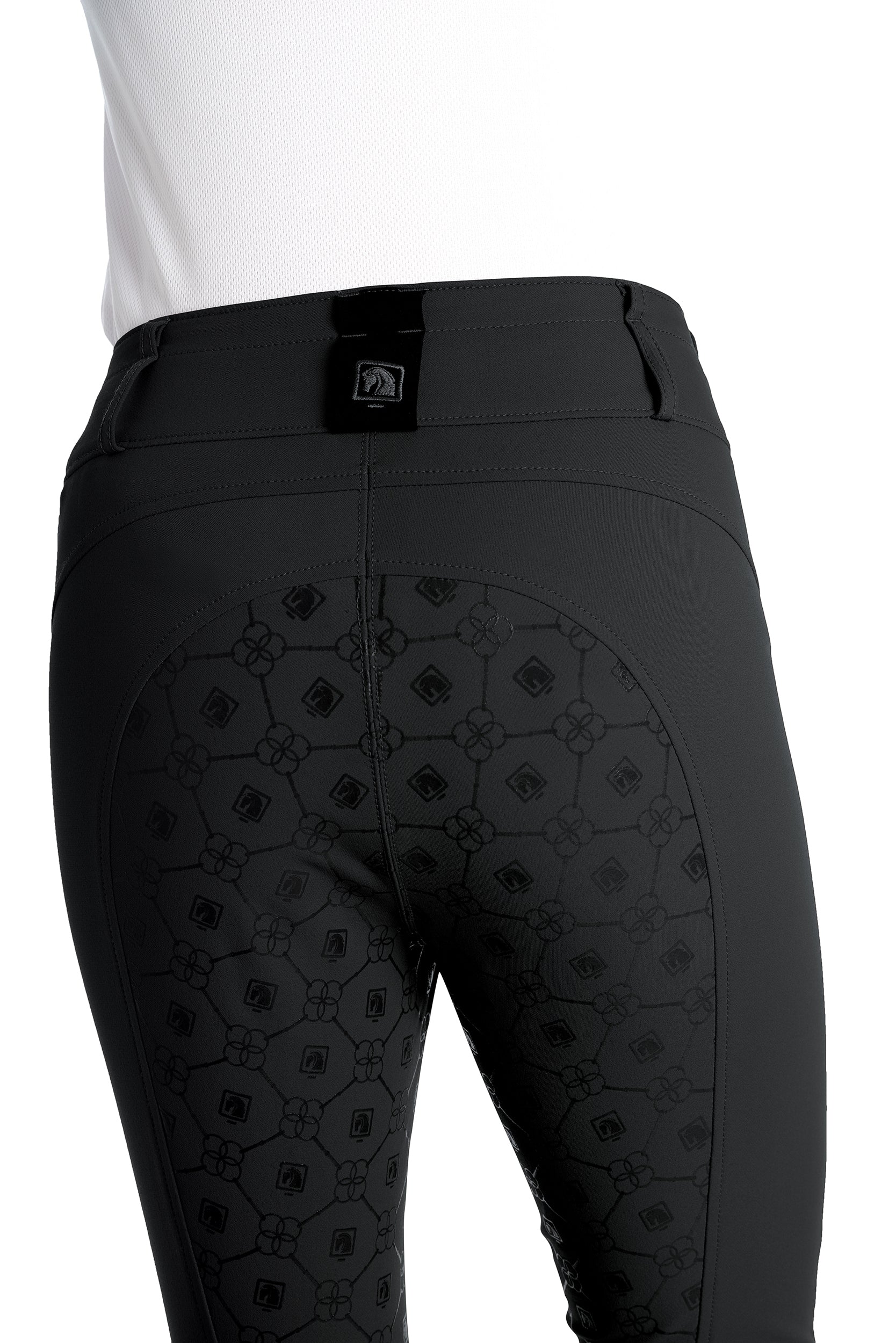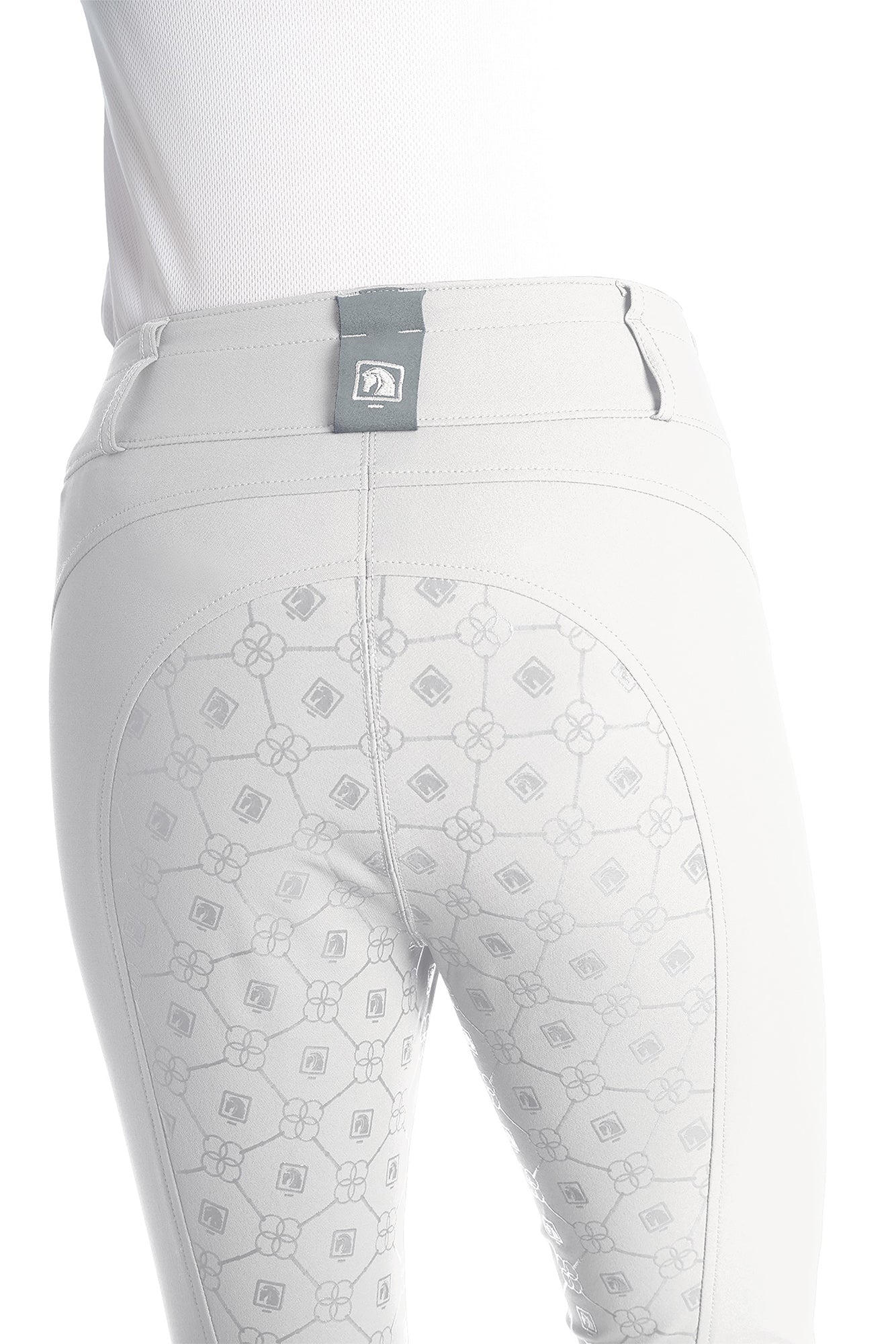 This ladies′ breech provides the high-waist fit desired by top-level riders. A silicone print on the seat provides a secure grip in the saddle without the added bulk of a full-seat layer.