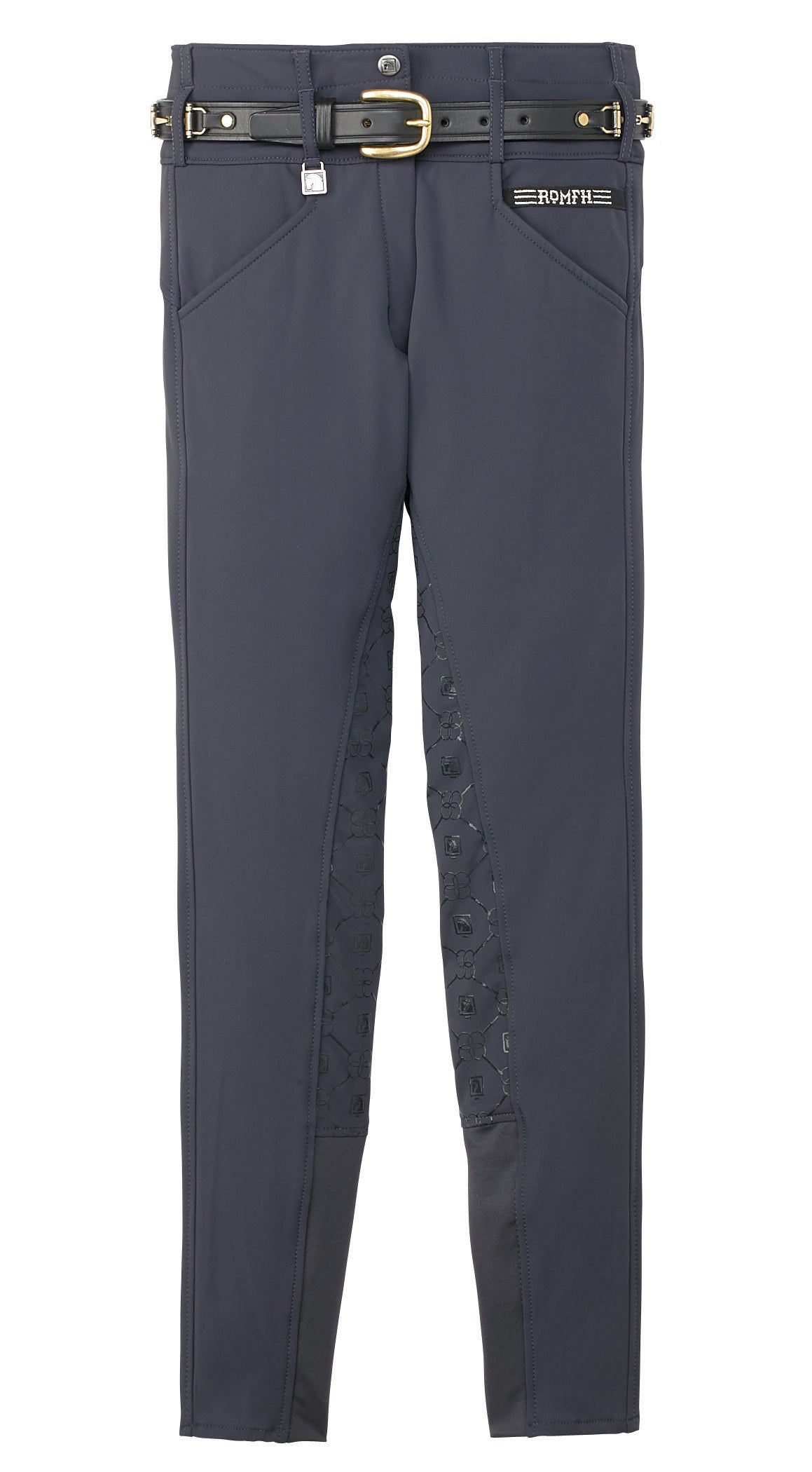 The Romfh® Isabella Silicone Full-Grip Breech is made of exclusive cooling Soft-Touch fabric in the same flattering, curvy cut as the super-popular Champion Full-Seat Breech. This “Curve Fit” is a special cut to reduce any gapping at the back waist; it is nipped in at the waist and cut fuller through the seat and thigh for a perfect fit on curvy girls.