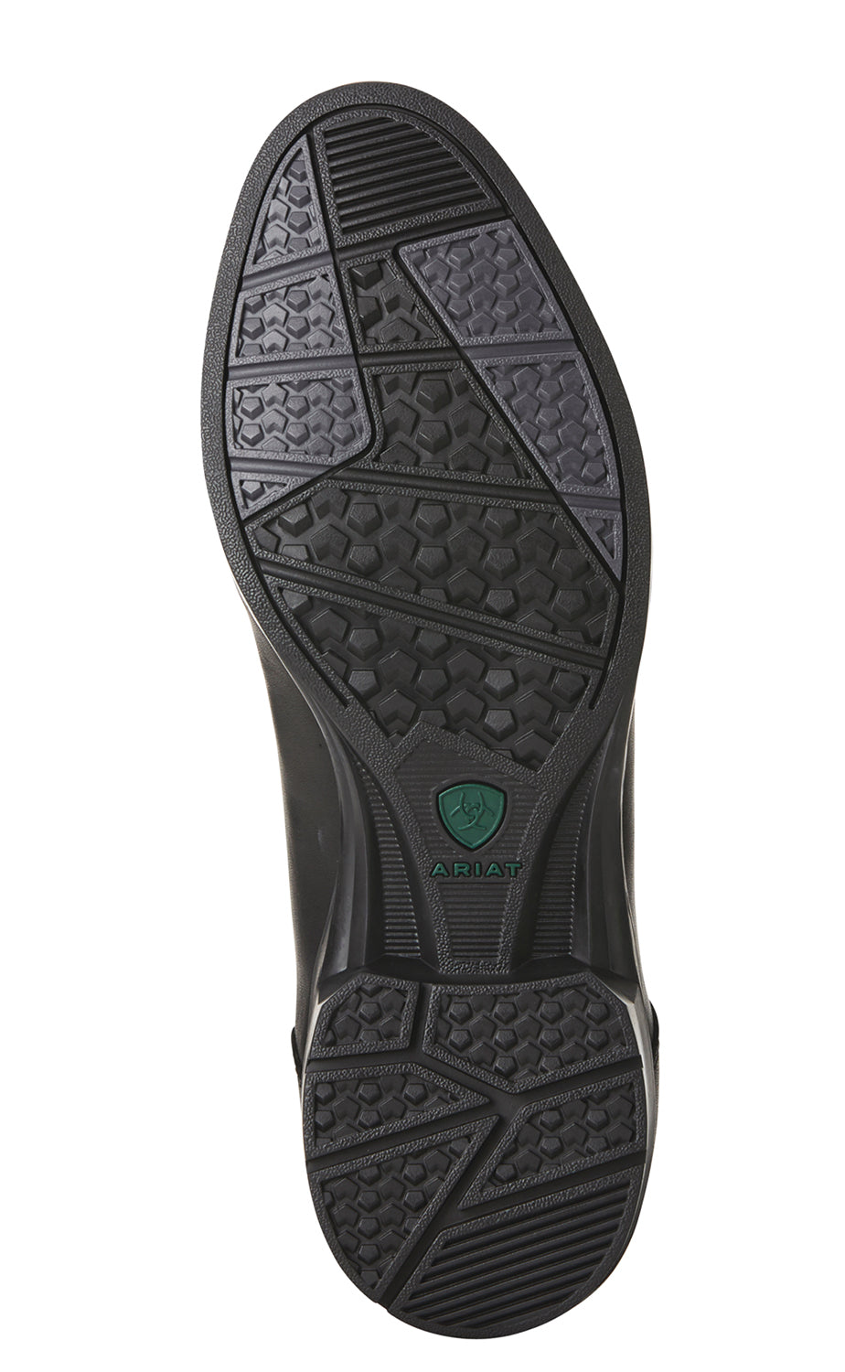 This versatile paddock boot is nicely appointed with a solid toe cap, rear pull, built-in spur rest and an antiqued brass YKK® zipper with Ariat logo pull.