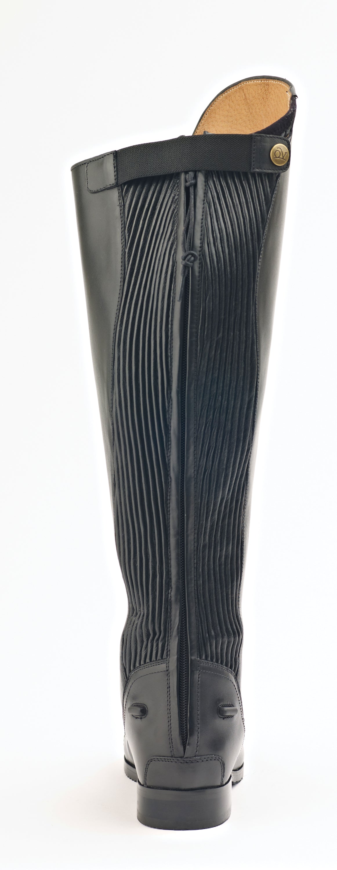 Double Leather Covered Stretch Gusset on both sides of the zipper allows for 1 ½- 2" additional stretchEnsure to allow for a drop of ½- ¾" when the boot is broken in.Height is taken from Center Back Top of Heel to Top of BootWidth is the Widest Past of the Boots. Measurements are Unstreached- Fully Stretched