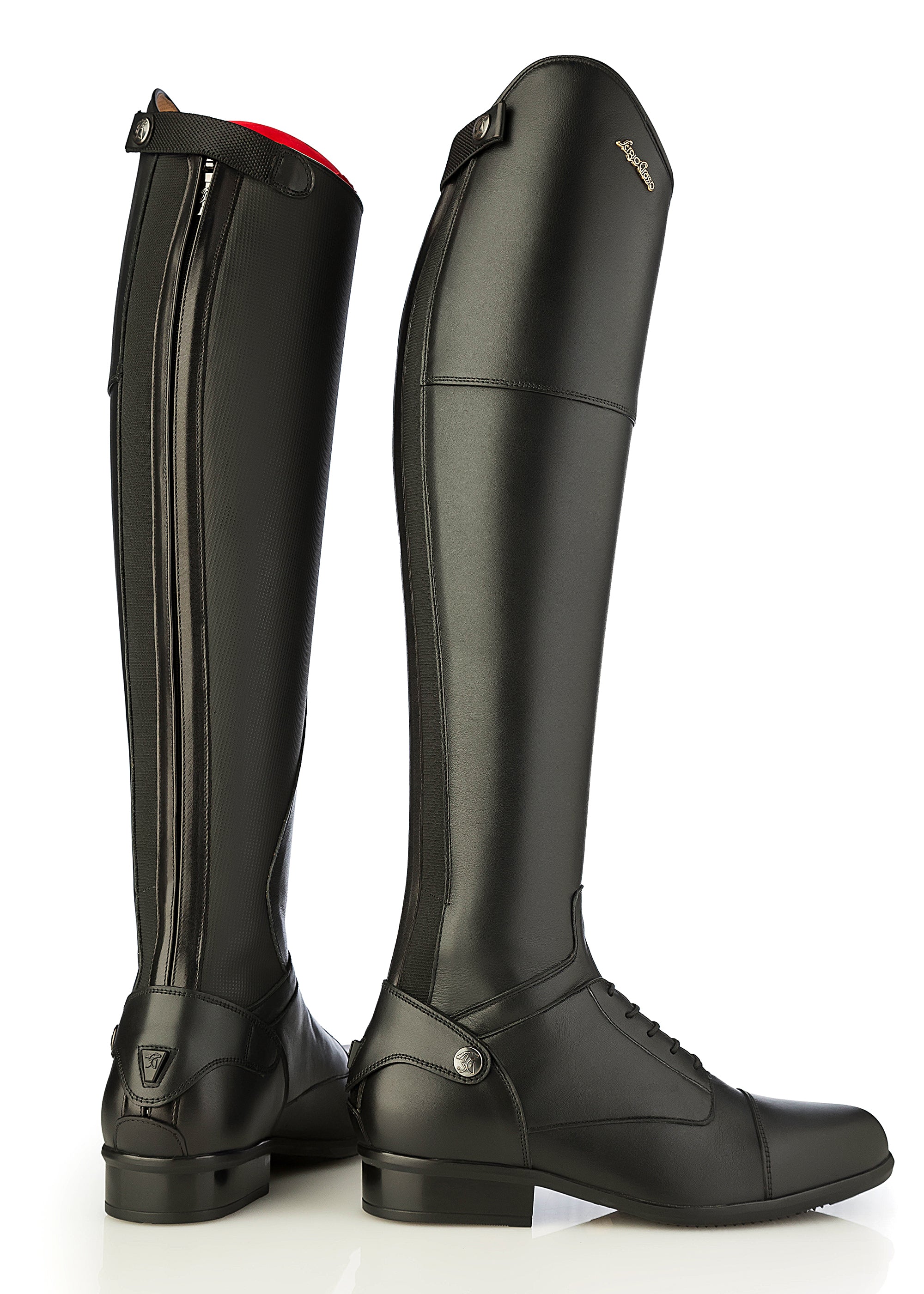 The Evolution Field Boot for men and women is part of Sergio Grasso’s Everyone Collection of tall boots, which is dedicated to all current and future equestrian enthusiasts. It is crafted for comfort with a supple nappa calfskin leather upper and lining, and designed to offer a good grip in the irons with the nonslip Vibram® sole. The SG Ultratech calf panel on the inner aspect ensures perfect grip in the saddle. The Evolution is a classically styled field boot with a Spanish topline and elastic front laces.