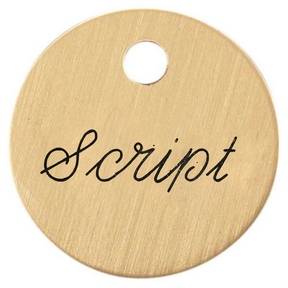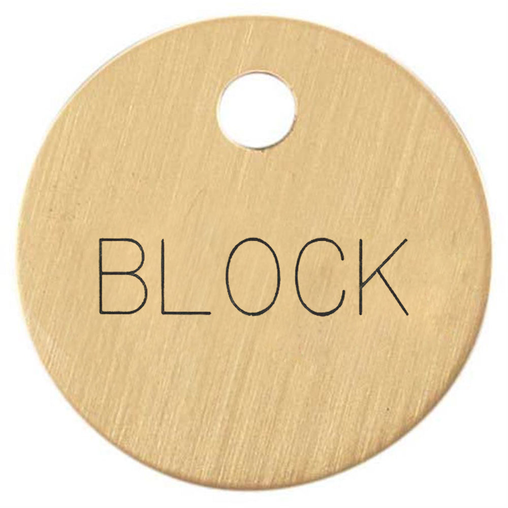 Our 1'' Round Bridle & Accessory Tag is a tasteful way to label for your horse’s bridle or saddle. The nameplate will be engraved in the USA in your choice Block, Old English, Roman or Script letters with your horse’s name, your name or your farm’s name. Predrilled 3/32" hole will fit a 3/4" S hook, included, for attachment. Choose Brass or German Silver. Usually ships in 2-4 business days. Personalized items are not returnable.