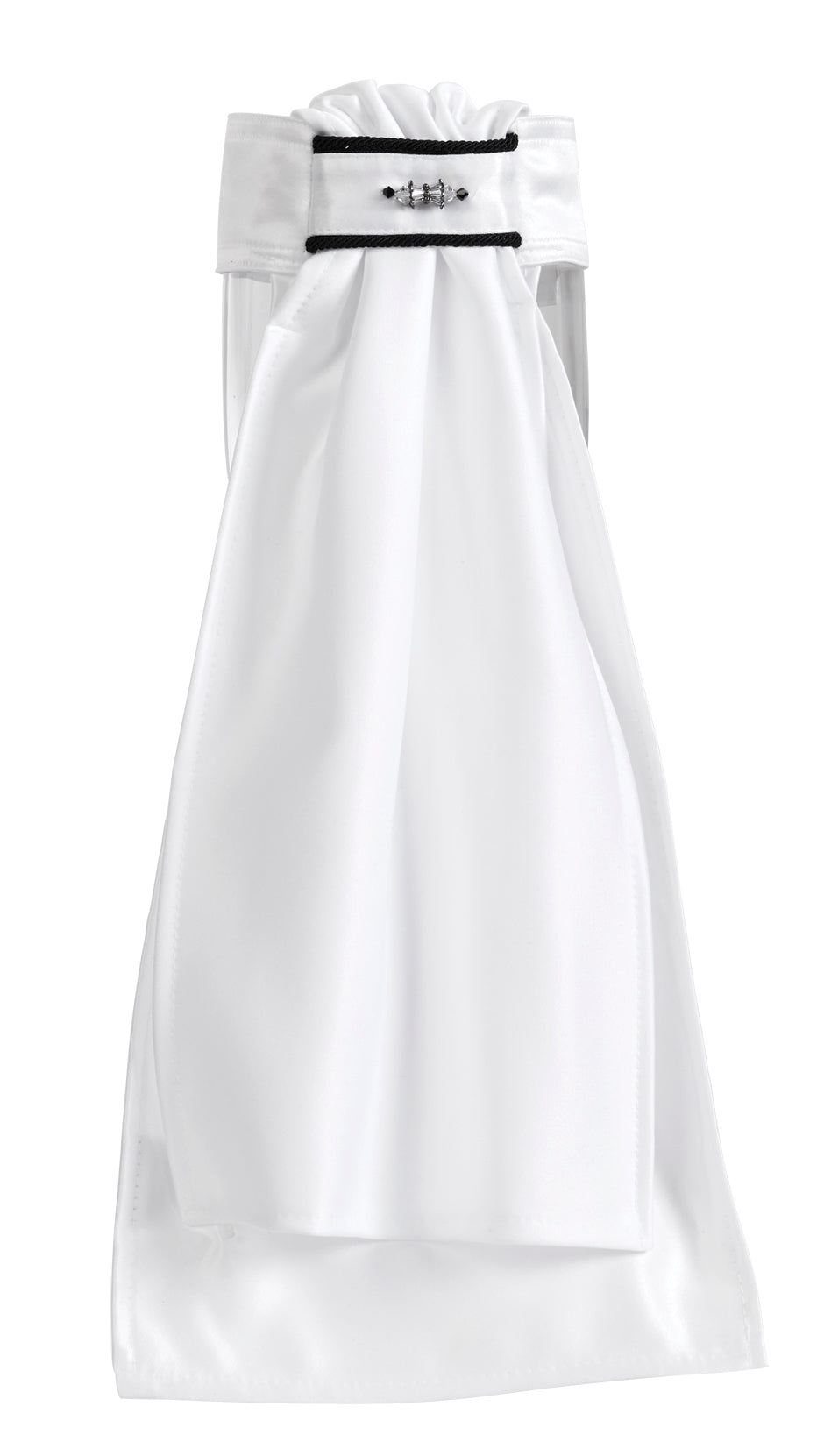 A sturdy, hook-and-loop back closure allows this dressage stock tie go on easily and stay put while you ride.