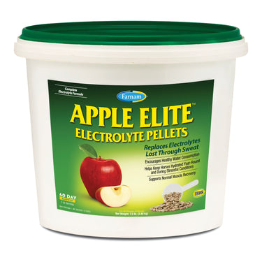Apple Elite™ Electrolyte Pellets for horses is a complete electrolyte formula designed to replace vital minerals lost through sweat and to help maintain fluid balance. These easy-to-feed, apple-flavored pellets help encourage healthy water consumption in support of optimal hydration year-round, important for proper digestion. Administration may also support muscle function and recovery.