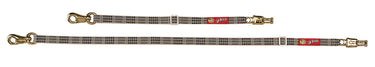 Outfit your barn aisle with the one-and-only Baker® plaid and the instantly recognizable red logo! Made of top quality nylon webbing for durability, the Baker Cross Tie adjusts in length from 32"- 60". It has a brass-plated panic snap at one end and bull snap at the other.