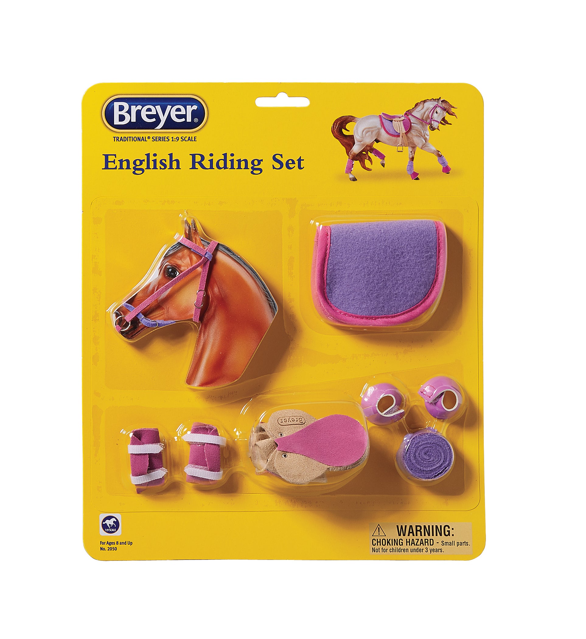 The Breyer® English Riding Set-Hot Colors will have everyone’s head turning! Brightly colored and fun in shades of hot pink and purple, this model horse English saddle set includes bridle, saddle, saddle pad, polos, splint boots and bell boots. Sized for Traditional series model horses (1:9 scale).