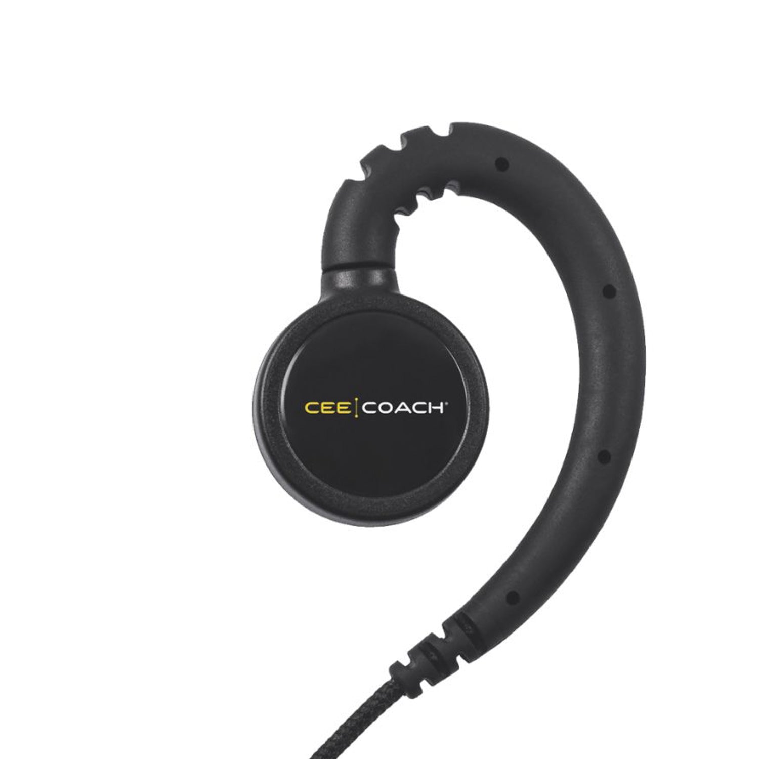 This CEECOACH® Mono Over-Ear Headset works in one ear. Wired. Works with all CEECOACH models, such as CEECOACH 2 and CEECOACH Plus.