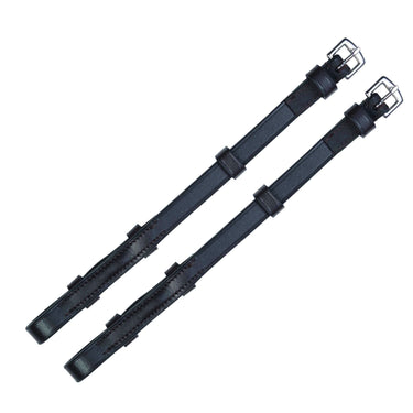 Collegiate® Essential Rubber Reins have traditional leather fronts and pebbled leather grips. Durable and secure hook stud closures.