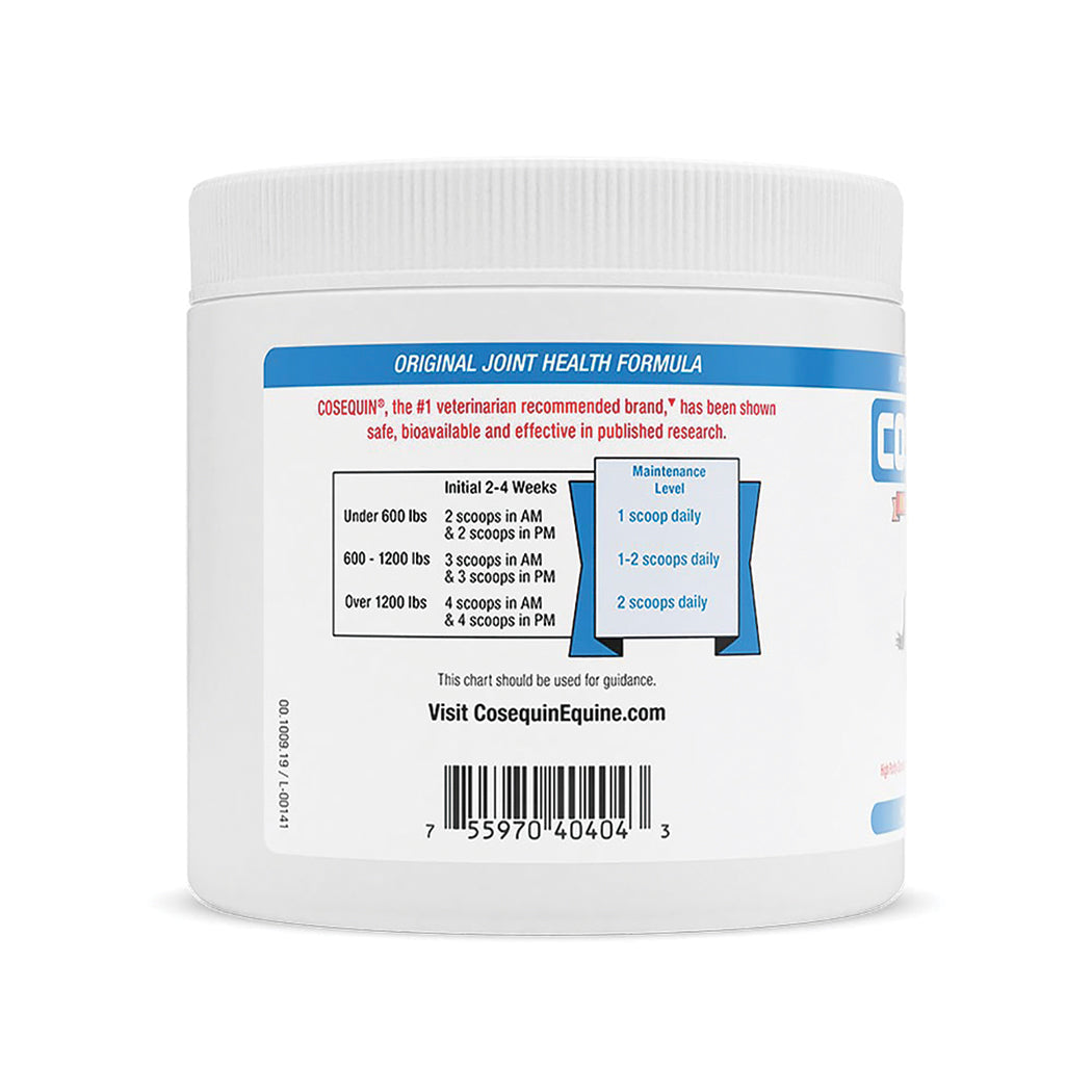 Cosequin® Original Powder by Nutramax® Laboratories is the #1 veterinarian recommended oral joint health supplement brand on the market. Formulated for horses and ponies using exclusive trademarked ingredients, FCHG49® Glucosamine and TRH122® Chondroitin Sulfate plus manganese ascorbate, this original Coseqin powder has been proven to be bioavailable and effective in supporting the joint health of equines.