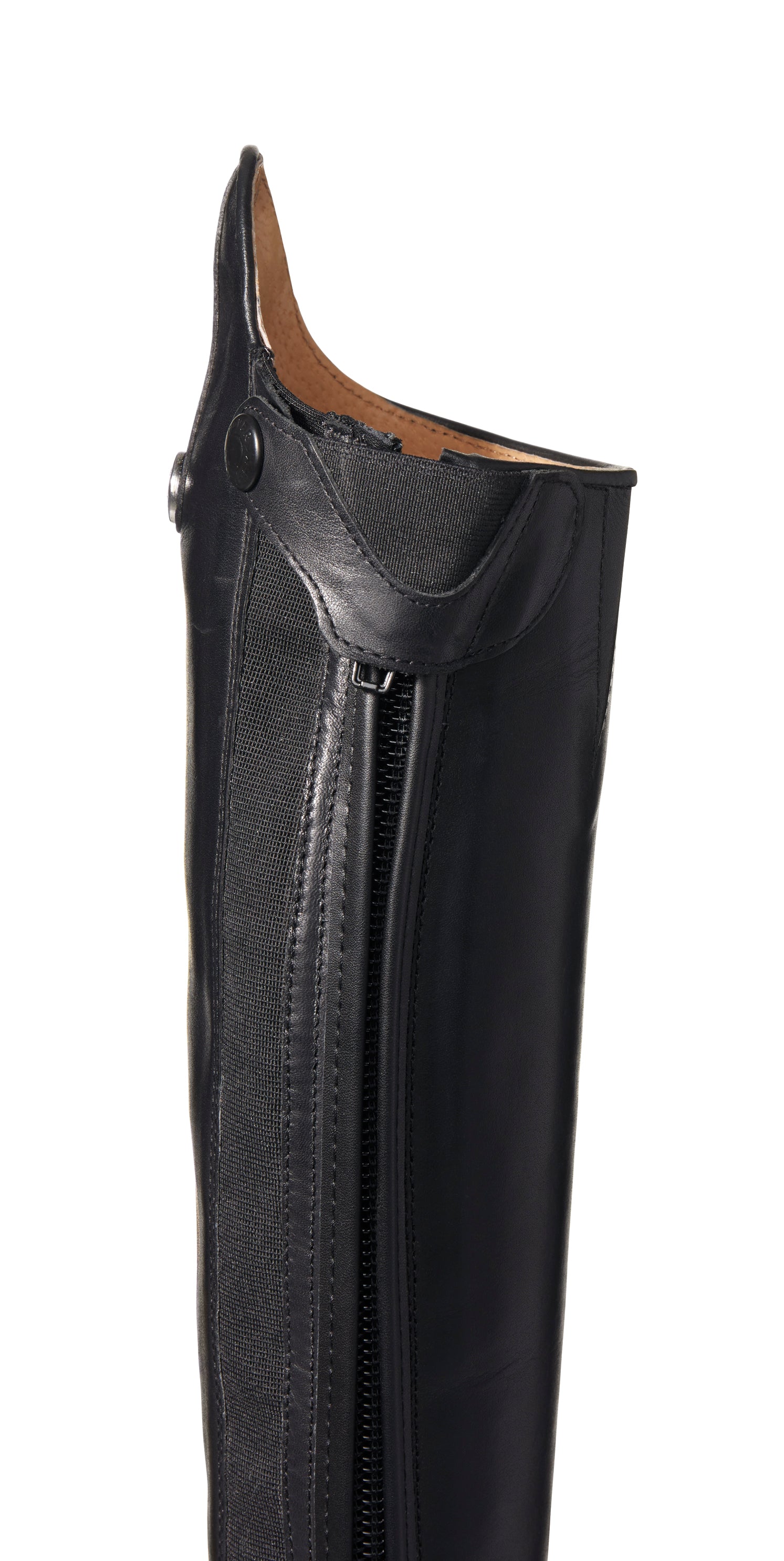 The DS Madison Dress Boot is crafted in Portugal by one of the world’s leaders in the creation of equestrian footwear. This exclusive riding boot is made of black, full-grain Spanish leather selected from the best hides and tanned in Portugal. Spanish leather is desirable due to the characteristics cultivated by a mild climate and ethical standards. The result is pliable, durable beautiful leather the breaks in easily.