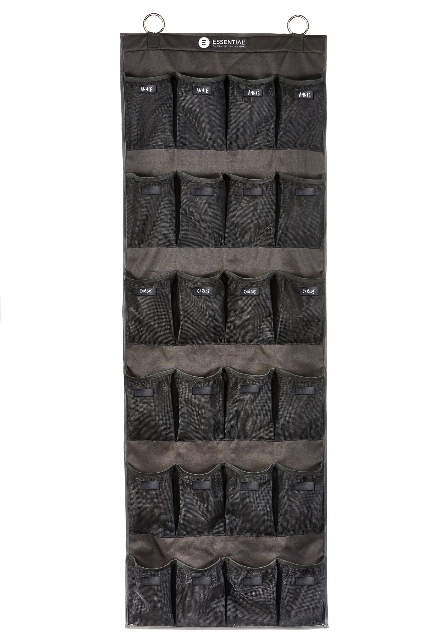 PRODUCT DESCRIPTION: EquiFit® Essential Hanging 24-Pocket Horse Boot Organizer with ID Patches