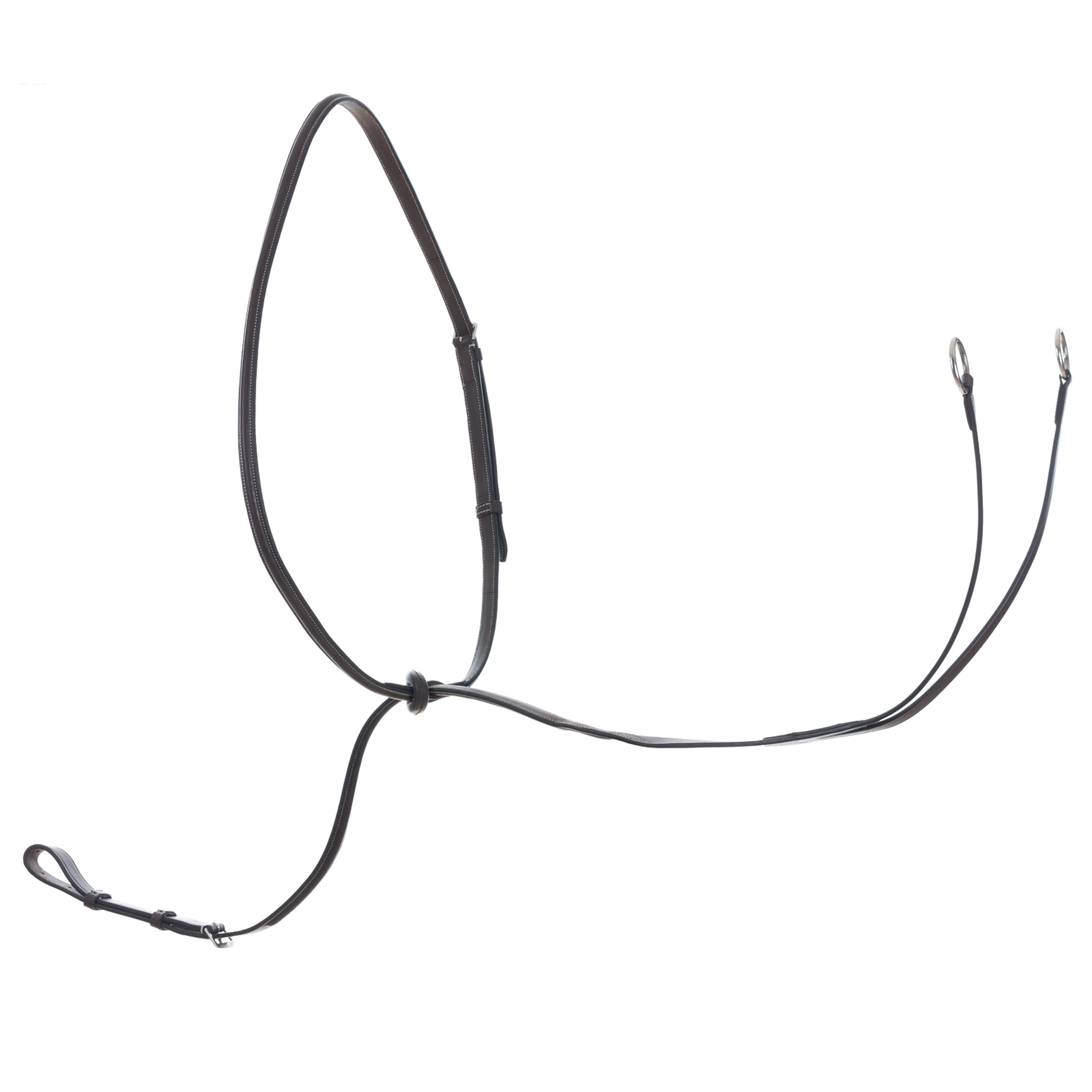 The Valkyrie Fancy-Stitched Running Martingale is made from rich chocolate brown leather for a traditional look. Stitch detail accents the neck and body strap, and yoke adjusts for a customized fit. Stainless steel hardware adds longevity.
