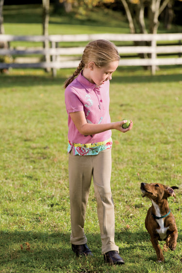 Perfect for little riders, EquiStar™ Children's Pull-On Jods combine pull-on styling with an exceptional price. These kids' jodhpurs are made of comfortable, mid-weight fabric with regular rise, belt loops, Grip Star™ suede knee patches and cuff bottoms. Ideal for lessons and schooling. Available in fun colors!