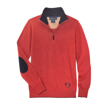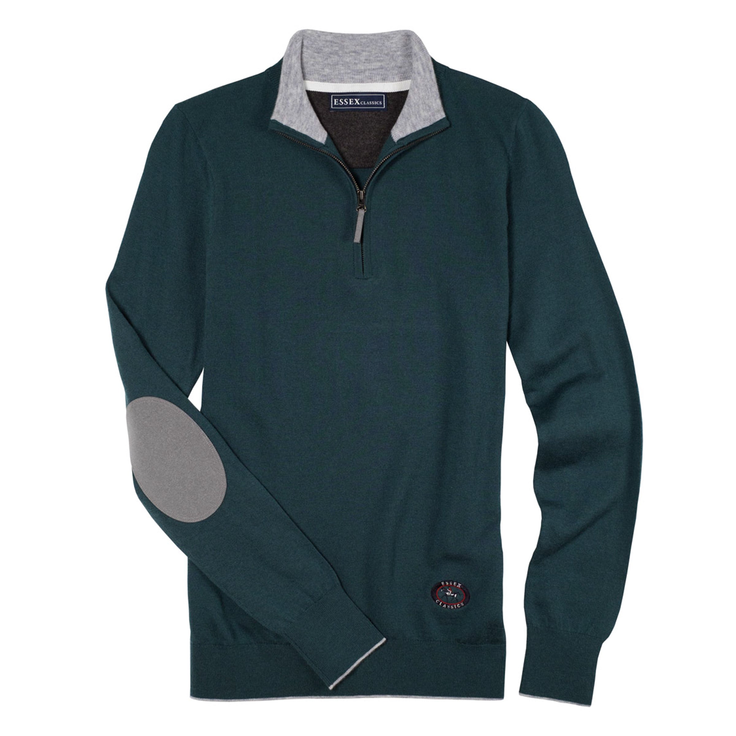 The Trey Quarter-Zip Sweater offers lightweight warmth in fine-gauge knit. With comfort stretch and temperature control, this easy, wash-and-wear style makes a perfect wardrobe staple. Contrast elbow patches and trim, zip placket and embroidered logo.